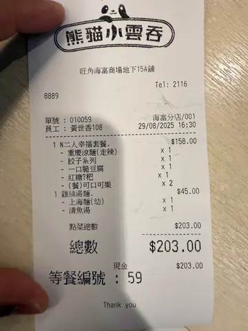 🌟🍴 【 大角咀• 熊猫小云吞】 🍴🌟 📍 熊猫小云吞 (大角咀)大角咀海庭道2号海富商场地下15A号舖🍖🥟🍟🥚🍰🍲🍇 • 🥪🍓🍤🍪🍜🍡🍹 重庆凉面(走辣) 🍜❄️凉面爽弹Q弹,酱汁酸甜开胃,无辣更清爽!😍 配料新鲜,拌匀后好开胃!🥢 夏日轻食,食完好舒服!🌟饺子系列 🥟🥄饺子皮薄馅靓,咬落汁水丰富好鲜甜!😋 每粒都好有诚意,无论煎煮都惹味!🥢 点心控嘅心头好!👍一口脆豆腐 🥮🌱豆腐外脆内嫩,一口一粒好过瘾!😍 豆香浓郁,调味简单但好味!🥄 小食之选,停唔下来!🔥红糖糍粑 🍡🍬糍粑外脆内软,红糖甜香爆汁!😋 咬落黏糯又唔腻,甜品控嘅最爱!🥰 每一啖都系幸福滋味!🌟(餐)可口可乐 🥤😎冰冻可乐气泡爆爽,饮落好解渴!😊 经典味道,配任何菜式都无违和!❄️ 简单嘅快乐!🚀鸡丝汤面 🐔🍜鸡丝嫩滑,汤底清甜又浓郁!😍 面条顺滑,吸满汤汁,暖胃又满足!🥣 简单嘅家常美味!👍上海面(幼) 🍜🧅幼面Q弹有嚼劲,上海风味酱汁香浓惹味!😋 葱油香气突出,食落好有层次!🥢 经典上海街头风味!🌟清鱼汤 🐟🍲鱼汤清甜鲜美,汤底清澈但充满鱼香!😊 鱼肉嫩滑,饮落好似为身体补充能量!🥣 养生又美味!🌿🍙🥤 餐厅评分🥤🍙 🔥 餐厅环境:🔥🔥🔥🔥🔥 ⛄ 服务质素:⛄⛄⛄⛄⛄ 🍾 食物味道:🍾🍾🍾🍾🍾 🎟️ 性价比:🎟️🎟️🎟️🎟️🎟️ 💰 消费:HKD 300✨🥢🍣🍕🍜🍴🍰✨ …查看更多