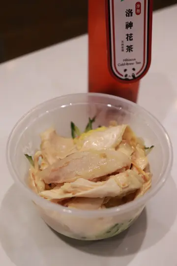 )((粉可以拣辣度,我拣既系小辣))我点既系鲜虾云吞,云吞即叫即炸,拎到手个阵啲汁已经淋咗上去,所以食个阵稍微无咁脆口,不过味道刚刚好。手撕鸡有好香既麻油味,鸡肉好软,鸡既份量都ok(手撕鸡系收银处旁边既雪柜,比完钱自己拎。)