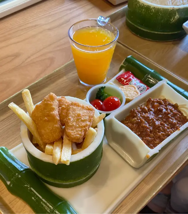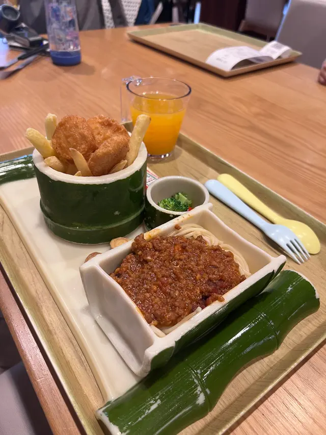開張早期已經好想去熊貓館隔離嘅熊貓餐廳食飯餐牌入邊種類多有中式亦都偏西式嘅薯條如果唔帶小朋友嘅話自助式嘅餐飲都可以接受但係佢呢個價錢半自助式嘅服務我就覺得唔係好抵講返啲食物先見圖雞塊唔夠熱亦都唔夠脆口薯條可以接受但係唔稱得上好味肉醬意粉醬還醬意粉還意粉而且啲意粉仲滰乾水黐埋一餅咁呢個兒童餐超級唔合格…查看更多