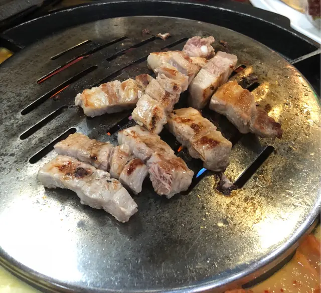 這天舊同事約吃韓燒。難得大家都是元朗友,約吃飯可以留在原區,不用搭個西鐵或巴市出市區,方便多了。 同事建議去元朗西菁街的熨烤達人。 韓式料理雖不如日菜或中菜款式多元化,但總能隔一段時間就加點新的好玩的元素。 例如韓燒的烤爐的周邊加個槽,開了爐,倒進蛋槳,待煮了一會兒,蛋槳熟了,就可以搭配著肉類一起吃,多新穎。 五花腩肉的油花似白雪,厚厚一塊,只看著它便覺得很滿足了。 比起吃,有些人燒烤的時侯更喜歡是幫別人燒。在燒的過程,看著紅噹噹的肉身慢慢變色,香味漸漸滲透出來,看著別人吃得津津有味,更甚自己品嚐。我便是這種喜歡燒多過吃得人。 有個內地KOL 喜歡在YouTube上載她就地取材,用一些意想不到的工具來煮菜的影片。我記得她也曾經用熨斗煎熟食物。現在自己拿著這個造型像熨斗的東西來「燒」,很新奇,簡直玩得不亦樂乎。 吃的體驗夠特別夠開心,好像食物都變得更好吃了!…查看更多