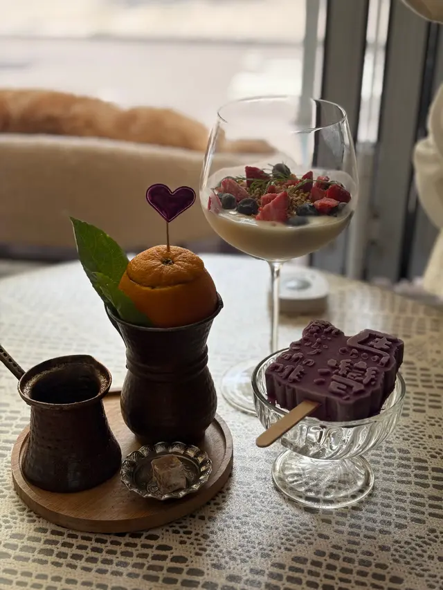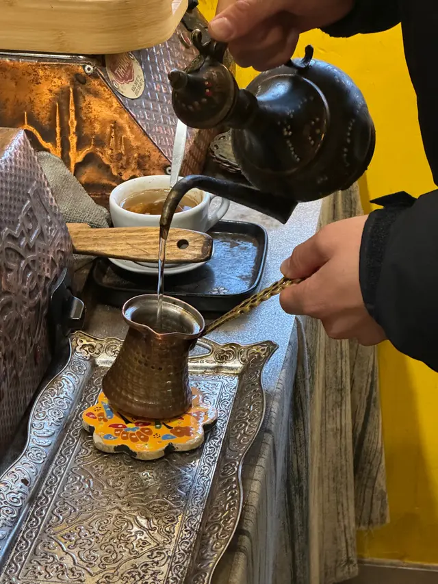 假日同朋友入離島chill下😮💨知道最近馬灣開咗新嘅打卡景點馬灣1868壁畫村,梗係要入去朝聖一下打下卡📸去咗bookmark咗好耐嘅土耳其主題cafe-熱沙咖啡,試吓想試好耐嘅土耳其咖啡😛店內貫徹土耳其風格,食物方面有唔少中東style主菜以及其他西餐,當然唔少得正宗用沙去煮嘅土耳其咖啡啦。店內仲有肥貓同可愛嘅貴婦狗,喺度歎杯土耳其咖啡、玩下貓狗都幾正🥳🍗土耳其烤雞飯 $178份量超級大,上菜時聞到香噴噴好吸引😍烤雞尤其雞髀位超級嫩滑!好juicy😋😋雞皮塗上酸酸地微辣嘅香料,惹味之餘唔會太濃香料味,味道啱啱好。配菜有開胃嘅沙律,同樣份量十足😆🐑亞美尼亞羊架飯 $188無烤雞咁出色,不過鍾意食羊嘅人都會啱,羊架啖啖肉,肉質偏實但唔會韌,帶少許羊騷味同香草味。☕️土耳其咖啡 主菜 +$30/教玩 +$80嚟呢度嘅重點唔係歎主菜,而係歎土耳其咖啡😎土耳其咖啡跟餐+$30就有,如果想體驗更多,可以加$80,有埋店員手把手教你點沖🧑🏻🍳可以係烘熱嘅爐上慢慢用沙堆煮咖啡。店員講得好詳細,會教你煮滾幾多轉會濃郁啲淡啲,又會講解土耳其咖啡歷史👏🏻唔講唔知,原來土耳其男子要知道女仔係咪鍾意自己,會帶佢去自己屋企沖咖啡,如果女仔係咖啡內加入糖、肉桂等令咖啡風味更好嘅材料,即係對男仔要有好感,相反加入鹽、辣椒等令咖啡變奇怪嘅配料則表示拒絕🤪用呢種煮法煮出嚟嘅咖啡會滲出不少咖啡油,飲落香醇微酸,幾香,唔會太苦澀👍🏻仲有粒土耳其軟糖送。學成仲有明信片扮證書送比你做紀念🥰推介指數(10分為滿分):8分…查看更多