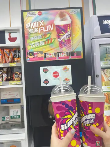 估唔到seven eleven有煮食区的叫热卖点,又几特别...同朋友行完山,好喝,所以入左去seven eleven想买野饮,甘岩见到佢有思乐冰自由斟.所以就买左黎饮,真系由小学饮到大,好有回忆感,好多seven eleven都已经冇得买,得少量店有.味道同以前一样,可乐/杂果/水蜜桃~自由斟,但唔系无限饮.
