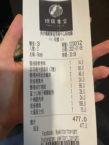 长沙湾隐世极邪恶深夜宵夜之选🍢食串烧相信系唔少香港人平时同朋友聚脚既选择今日推介呢间烧夜食堂 系近期食过最惊喜之选佢嘅位置已经唔可以话系隐世 直头系隐蔽🥲店内位置更加系唔多 只有寥寥可数嘅四 五桌要食到真系要撞下运气😂.🎈汁烧鸡肉串 ($24)好耐都冇食过咁正既照烧鸡肉😋外面焦脆入面多汁 有少少后悔只系点左一串而且酱汁非常惹味👍评分: 8/10. 🎈盐烧鸡软骨串 ($14) 虽然只系10几蚊一串 但系都落晒心机🧐软骨脆卜卜唔会硬 仲带点鸡油香 亦系调味超高质🤤评分: 8/10.🎈烧油甘鱼鲛 ($88) 油甘鱼刺身就食得多 鱼鲛可能比较少食但其实呢个部位先系最正 面颊位最滑最多油🤤而且佢哋嘅自家烧汁都系冇得顶味道层次感好丰富 除咗表面嘅焦香味仲有酱料嘅甜香味烧鱼用既烧汁份量慷慨 所以啖啖肉都有酱香不过最正都唔系佢用嚟烧鱼嘅酱汁佢另外仲有一个泰式酱汁简直系惹味到想成碟奶🤤评分: 8.5/10.🎈盐烧阿根廷赤虾串 ($24)虾壳烧到好通透 几本上可以连壳食 除左椒盐之外仲有炸蒜做调味 超级惹味而且虾肉都结实鲜甜 唔会霉霉烂烂(如果唔系要等咁耐我都想encore🥲)评分: 8.5/10.🎈原条烧粟米 ($24)虽然调味好好食 但系粟米真系唔够甜🥲调味来讲我觉得系有诚意嘅 除咗浓浓嘅酱汁仲有少少紫菜虽然酱香惹味 但粟米本新差咁啲评分: 7/10.🎈蒜蓉烧半壳扇贝 (3只) ($68)呢个可以话系我每次食烧烤必点🤤火喉好好 冇烧过龙唔会好韧除咗expect到嘅超香 葱 蒜味之外仲有个酱🤤未算最鲜甜 不过都算新鲜冇沙 对得住价钱评分: 8/10.🎈原条烧鱼 ($168) 全晚最期待就系佢 闻到隔离枱叫左超香忍唔住都叫一条等左大约半个钟先上菜 加上前边𠮶啲都好高质所以可能期望太高就会失望 有少少落差🥲原条香茅塞入去焗 一打开就闻到好香既香茅味鱼系用乌头品质都唔错 大大条见到有黄油痴住鱼皮而且最好嘅就系唔多骨 不过唔算系好滑嘅鱼再加上可能烧耐左 肉有少少干好在个泰式酱汁又再次搭救左成件事🤣评分: 7/10.🎈总括而言所有食物质素都唔错 而且个柚子汽水我都好钟意😂虽然位置偏僻 等候时间非常长但可以感受到小店嘅诚意同人情味就凭呢个等候时间我可以推断佢所有嘢都系即刻整唔系整定😂😂😂不过真系食得太耐 食咗唔系好多嘢但系食咗两个钟所以都系比较适合想揾个地方坐下饮下酒嘅朋友对于我来讲系绝对有回头嘅一间小店😋评分: 8/10…查看更多