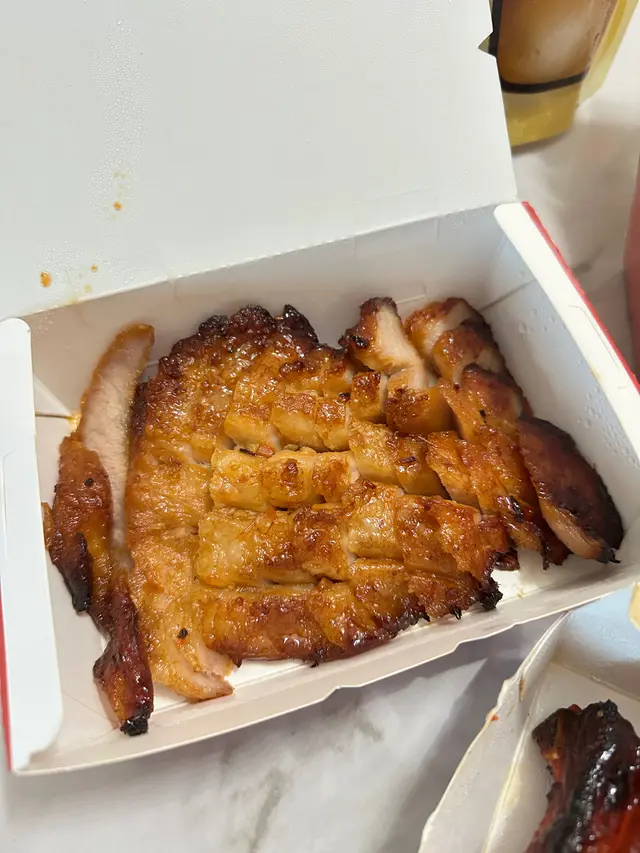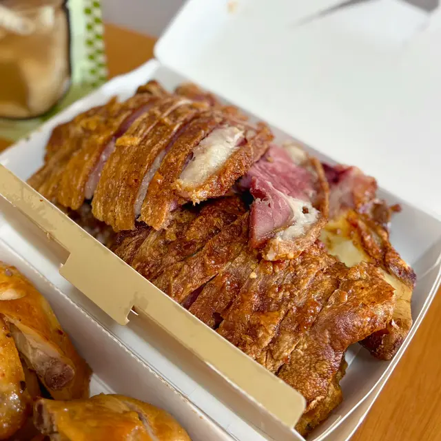 位於將軍澳坑口的港式燒臘滷水外賣店,九龍新界都設有多間分店,一整個飯盒或外賣加餸也可。菜品份量適中,燒味份量也很足料。隔著玻璃可以看到各式各樣的燒味、燒物。而燒味方面,師傅手起刀落,即叫即斬的燒味。西式燒味飯系列:招牌燒豬手飯燒豬手,份量蠻多,皮酥脆肉結實。配搭醬汁,不會那麼乾,底下是白飯,拌著醬汁一起吃,特別下飯。冷盤小食袋裝滷物有很多款,分別有酒醉、泡椒及滷辣系列,如酒醉糖心蛋、泡椒雞軟骨、滷辣牛展、滷辣金錢肚等等,全部都是一整袋密實包裝。香草法式春雞燒春雞有幾款口味,香草味,味道不會太濃味。春雞皮薄肉多,師傅切好雞件,方便食客享用。蜜糖黑椒鴨胸黑椒粒粒灑上面,肉質煙韌,皮脆爽彈。岩鹽烤鯖魚柳鯖魚柳,鹹鹹香香,不過不失。…查看更多
