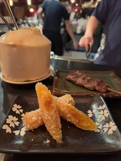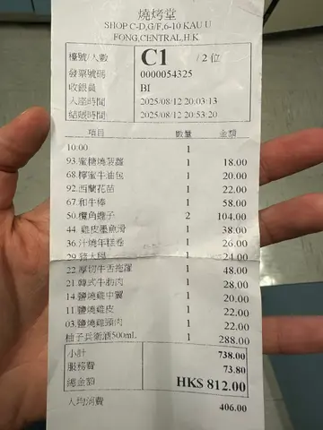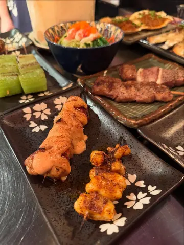 中环「烧烤堂」每日晚市时段人气非常旺,冇book位基本上系食唔到😆 呢度串烧不仅款式多,而且好有创意,系坊间数一数二嘅人气串烧店😎中环分店环境好正,超好气氛,仲有卡位👍 侍应非常醒目,上菜速度颇快,及时换碟,服务相当到位。我哋每次都叫好多款,拣几款同大家介绍🤩🌟盐烧白鳝、日式白鳝鱼皮烧得好香脆,白鳝厚肉,而且肉质弹牙,非常高质🫶🏻🌟厚切牛舌拖罗叫得拖罗果然系油脂丰富,非常厚切😀 牛尾香浓,口感非常满足👍🌟鸡皮墨鱼滑我好钟意呢个创意组合。鸡皮焦脆,加上墨鱼滑,非常弹牙,呢个质感好特别👏🌟芫茜猪肉卷五花肉卷住芫荽,香气互相平衡,终于识芫荽嘅朋友唔好错过😎🌟和牛棒配松露一口饭和牛棒肉香浓郁,而且有非常香松露味,和牛同松露真系一对好朋友,捞埋蛋液一齐食,好满足😎🌟蒜香牛油酒煮蚬蒜香牛油柠檬汁真系超好食,蚬肉新鲜胀卜卜冇沙,个汁仲可以点配搭嘅蒜蓉包食,非常推介👍实在叫咗太多嘢不能尽录,每一款我哋都好满意,生啤买一送一更加系亮点🤩 喺呢度食嘢饮酒吹水真系可以非常尽兴👏…查看更多