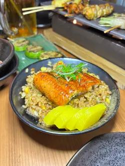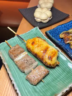 尖沙咀🚇诺士佛台嘅烧烤堂🔥系区内嘅人气串烧专门店😍,呢度晚晚都热闹非常,👏因为佢哋嘅串烧款式非常多,💰价格又实惠,真系值得一再嚟帮衬!首先叫咗盐烧原片鸡皮🐔,大大块鸡皮烧到外层酥脆卜卜🤤,咸香盐烧味道一流👏,啖啖都充满鸡皮香🔥,而且一啲都唔油腻。手切牛胸爽🥩入口有嚼劲💪,鲜味十足😋,比火锅嘅食法🥢更加甘香。汁烧三黄鸡气管好特别🤩,鸡气管咬落索索声🎵,爽脆有口感,汁烧酱汁甜甜地都几惹味👍。盐烧三黄鸡腿肉🍗同样出色🌟,鸡腿肉嫩滑多汁🥰,盐烧嘅简单调味反而更突出鸡味🐓。鸡肉软骨棒(付月见)系必点之选🤤,鸡软骨脆口有嚼劲💪,蘸埋月见汁就更加美味❤️。鸡皮墨鱼滑几有惊喜😲,外面鸡皮烧到好香脆🔥,入面包住弹牙鲜味墨鱼滑🦑,配搭好特别又好夹👏。豚肉系列方面💖个人推介必食豚肉节瓜波板糖(附月见),造型好似波板糖🍭,豚肉同节瓜层层卷起🌀,外皮烧到焦香🔥,节瓜清爽中和咗油腻感😌,层次超丰富,绝配呀!豚肉日本苹果卷🍎都好出色,苹果嘅酸甜味配上香口豚肉🐷,味道平衡得刚刚好👍!牛舌拖罗🥩系佢哋招牌之一🏆,厚切牛舌肉质嫩滑爽口😋,烧到粉嫩多汁💦,牛味浓郁好正👏!蒜蓉🧄菜圃烧豆皮劲惹味,入面嘅菜脯粒粒香脆😆,蒜蓉好香,豆皮烧得又干又脆,大大件好有口感😍。焦糖鳗鱼玉子烧🍳超级惊喜,玉子烧嫩滑多汁🥚,入面有好肥美嘅鳗鱼🐟,面头有一层焦糖脆脆地,入口甜甜咸咸好特别👍!最后嘅鳗鱼炒饭🍚分量都几足,而且啲饭粒粒分明🌟,鳗鱼香气十足🐟,酱汁包住每粒饭😍,加上饭入边都有鳗鱼粒,😋真系好食到一啖都唔可以放过!…查看更多
