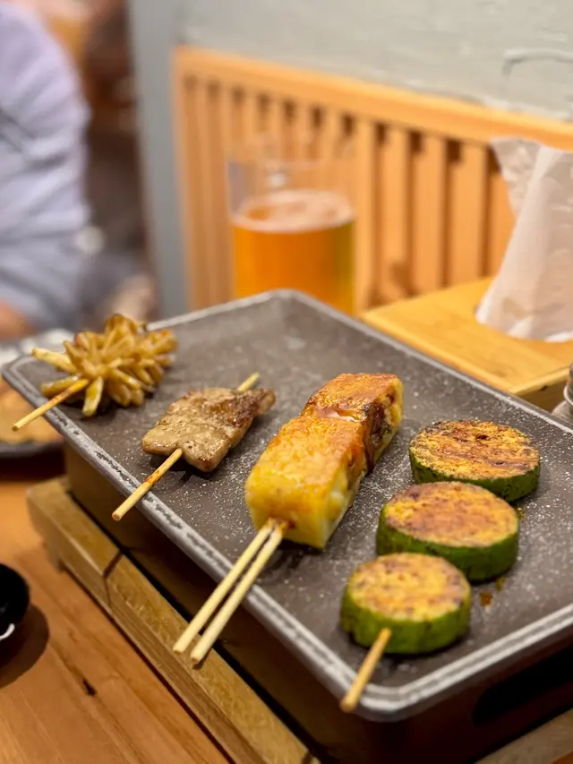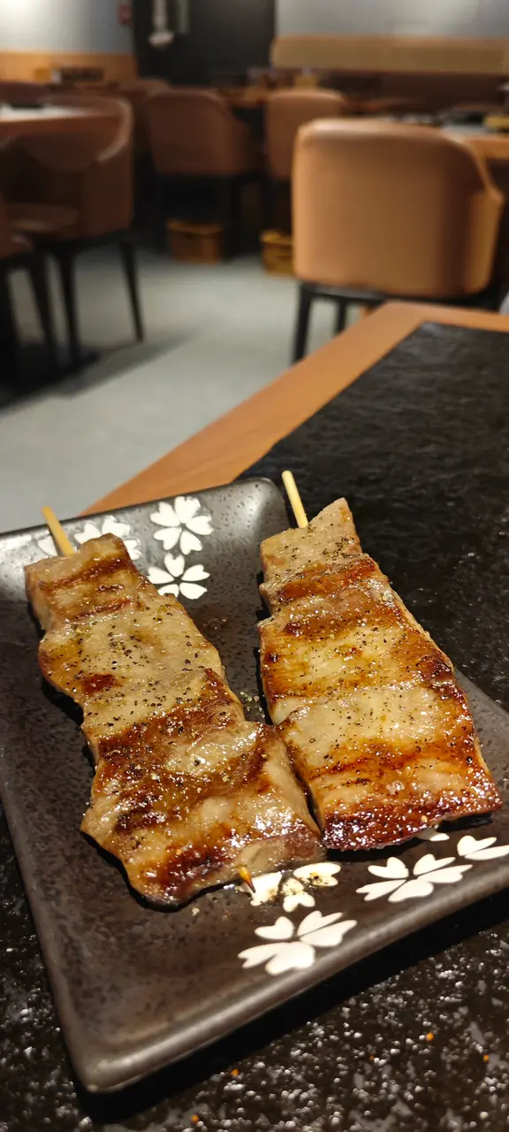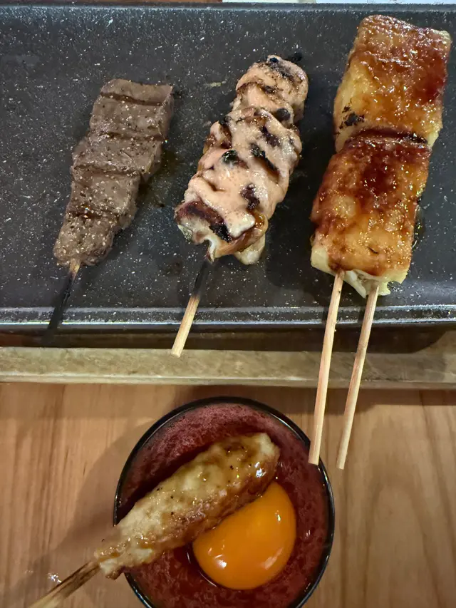 尖沙咀🚇諾士佛臺嘅燒烤堂🔥係區內嘅人氣串燒專門店😍,呢度晚晚都熱鬧非常,👏因為佢哋嘅串燒款式非常多,💰價格又實惠,真係值得一再嚟幫襯!首先叫咗鹽燒原片雞皮🐔,大大塊雞皮燒到外層酥脆卜卜🤤,鹹香鹽燒味道一流👏,啖啖都充滿雞皮香🔥,而且一啲都唔油膩。手切牛胸爽🥩入口有嚼勁💪,鮮味十足😋,比火鍋嘅食法🥢更加甘香。汁燒三黃雞氣管好特別🤩,雞氣管咬落索索聲🎵,爽脆有口感,汁燒醬汁甜甜地都幾惹味👍。鹽燒三黃雞腿肉🍗同樣出色🌟,雞腿肉嫩滑多汁🥰,鹽燒嘅簡單調味反而更突出雞味🐓。雞肉軟骨棒(付月見)係必點之選🤤,雞軟骨脆口有嚼勁💪,蘸埋月見汁就更加美味❤️。雞皮墨魚滑幾有驚喜😲,外面雞皮燒到好香脆🔥,入面包住彈牙鮮味墨魚滑🦑,配搭好特別又好夾👏。豚肉系列方面💖個人推介必食豚肉節瓜波板糖(附月見),造型好似波板糖🍭,豚肉同節瓜層層卷起🌀,外皮燒到焦香🔥,節瓜清爽中和咗油膩感😌,層次超豐富,絕配呀!豚肉日本蘋果卷🍎都好出色,蘋果嘅酸甜味配上香口豚肉🐷,味道平衡得剛剛好👍!牛舌拖羅🥩係佢哋招牌之一🏆,厚切牛舌肉質嫩滑爽口😋,燒到粉嫩多汁💦,牛味濃郁好正👏!蒜蓉🧄菜圃燒豆皮勁惹味,入面嘅菜脯粒粒香脆😆,蒜蓉好香,豆皮燒得又乾又脆,大大件好有口感😍。焦糖鰻魚玉子燒🍳超級驚喜,玉子燒嫩滑多汁🥚,入面有好肥美嘅鰻魚🐟,面頭有一層焦糖脆脆地,入口甜甜鹹鹹好特別👍!最後嘅鰻魚炒飯🍚分量都幾足,而且啲飯粒粒分明🌟,鰻魚香氣十足🐟,醬汁包住每粒飯😍,加上飯入邊都有鰻魚粒,😋真係好食到一啖都唔可以放過!…查看更多