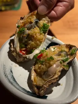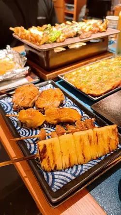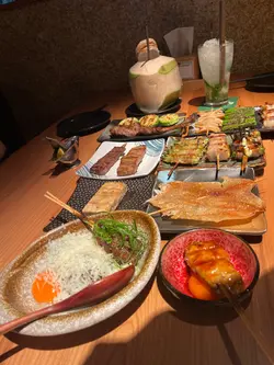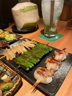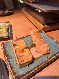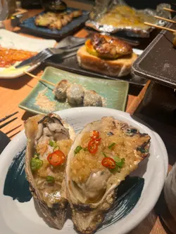 呢間人氣串燒店向來甚有口碑深受食客歡迎,上月底由旺角舊址搬遷至家樂坊,新店環境光猛寬敞,日式木系裝修簡潔舒適。店內沿用小火爐保溫設計,好讓未食嘅串燒仍保持溫度。創意串燒多達50款,仲有日、泰、港、川式等多種風味,定價$18起。絕對必食推介:焦糖青蘋果鵝肝多士 $108厚切鵝肝分量足夠曬大塊,火候控制得宜,入口勁柔滑。多士烘得脆身,夾層青蘋果片酸甜清爽,有效中和鵝肝油膩感。雖然邪惡但真係好食到Encore再叫多件。雞皮墨魚滑 $38將墨魚滑釀入雞皮燒製,外層雞皮脆如薯片,內裡墨魚滑彈牙有嚼勁。呢款創意串燒值得一試。汁燒免治雞肉軟骨釀冬菇 $28軟骨粒幾有咬口,冬菇香味十足保持多汁,估唔到呢個配搭都夾得幾好食。麻辣墨魚鬚 $22墨魚鬚爽脆彈牙,麻辣粉提香不嗆喉!鹽燒白鱔 $48鱔肉厚薄適中,魚皮燒至微焦脆口,肉質緊實帶炭香,簡單以鹽調味已能帶出鮮味。厚切鹽燒牛舌拖羅 $48比牛舌芯更加厚身,肉質爽口彈牙,鹽燒的味道非常惹味。蒜香牛油酒煮蜆 $68蜆肉飽滿無沙,酒香溫和不會過濃。附送的蒜蓉包烘得酥脆,牛油蒜蓉醬香氣撲鼻,蘸汁食更滋味。其他串燒包括:鹽燒雞軟骨 $18、汁燒三黃雞氣管 $28、鹽燒雞中翼 $20、爽口雞腎 $23、椒鹽鮮雞腳根 $18、牛舌芯 $28、牛油果豚肉卷 $28、鹽燒豚肉荔枝卷 $22、鹽燒豚肉荳苗卷 $28飲品方面:生啤現時有買一送一優惠,不過友人唔飲酒,所以選了大大杯嘅青檸梳打$28及解喝好飲嘅菠蘿乳酸$28總括而言,新店座位較舊店寬敞,服務亦算勤快,好適合三五知己聚餐。晚市人流較多,真的要提前訂座!…查看更多
