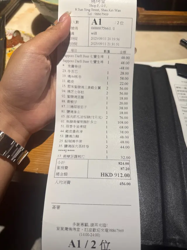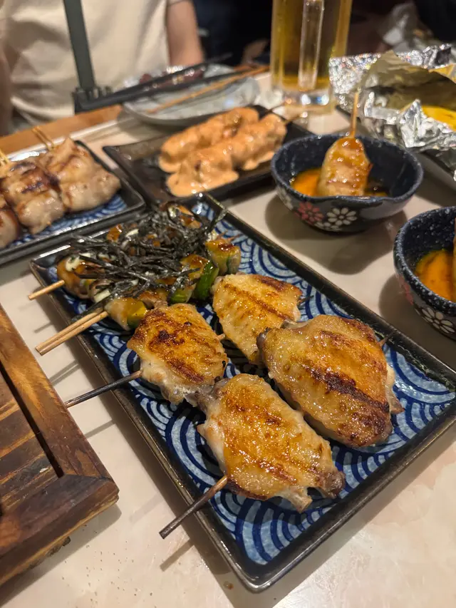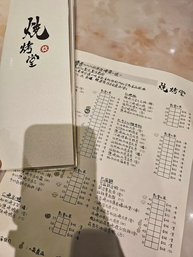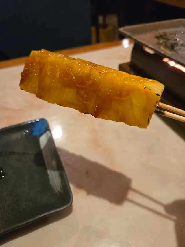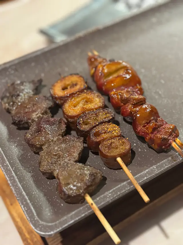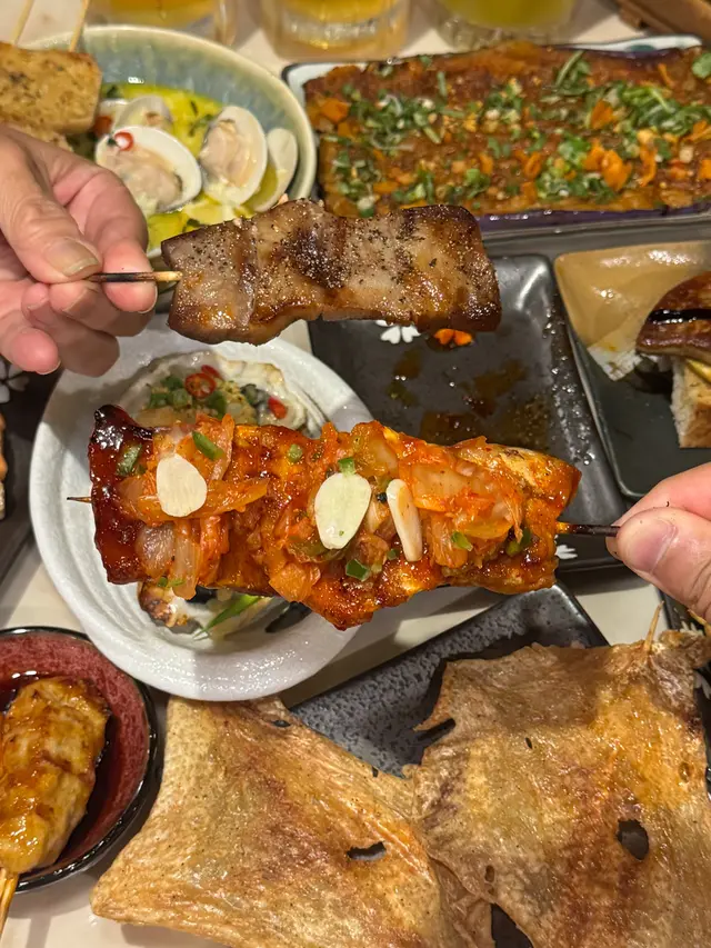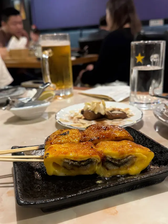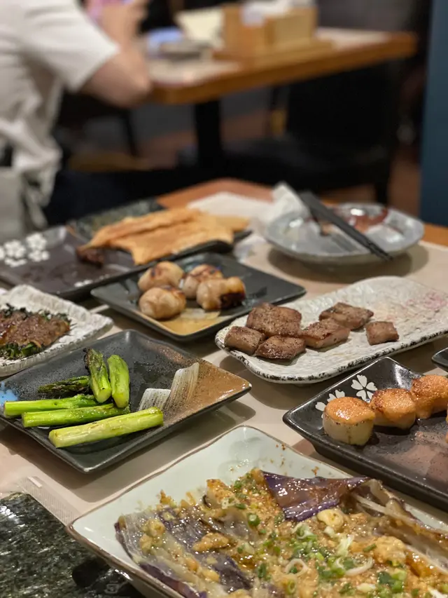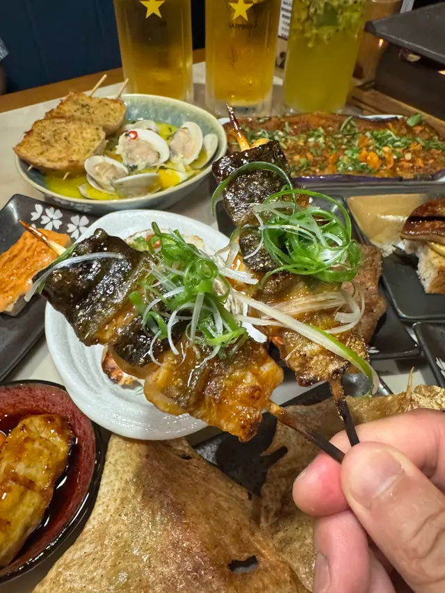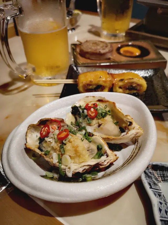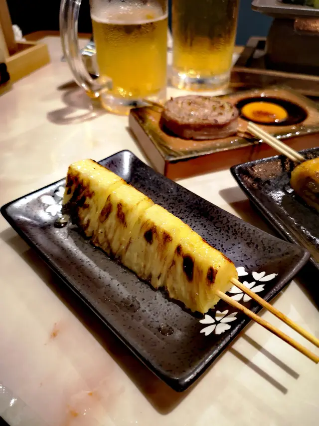 向來喜歡吃串燒,燒烤堂的串燒一直保持高水準,無論哪間分店的味道都一樣出色。串燒選擇多達百款,每次來都讓人感到驚喜,環境乾淨,晚上7點後幾乎滿座。生啤買一送一,串燒配上生啤真的是絕配,讓人盡情享受!蒜蓉燒廣島蠔 $48/2隻蠔肉飽滿,味道鮮甜,充滿蒜香,讓人食指大動。汁燒免治雞肉軟骨棒 (付月見) $36雞肉棒軟嫩,與汁燒蛋汁搭配,美味無比。豚肉節瓜波板糖 (付月見) $38豚肉片捲住節瓜片,口感層次分明,特別好吃。焦糖鰻魚芝士玉子燒 $28焦糖面層的玉子燒甜美可口,鰻魚肥厚,口感豐富。焦糖青蘋果鵝肝多士 $108多士香脆,鵝肝入口即溶,搭配青蘋果片酸甜解膩,令人驚喜。鹽燒鮮三黃雞腿肉 $28雞肉鮮美,啖啖肉,鹽燒的味道惹味,讓人回味。明太子燒飯團 $38明太子鹹香,飯團外脆內軟,十分飽肚。孜然燒蒜蓉茄子 $38茄子肉軟糯,孜然粉的味道濃郁,蒜香四溢。鹽燒白鱔 $48鱔皮香脆,肉質彈牙,鹽燒的味道非常惹味。福岡味噌松板豬 $28甜美入味的豬頸肉,爽口好食,令人滿足。燒芝士年糕 $28年糕煙韌,芝士醬滿滿,滋味十足。孜然燒西蘭花苗 $22西蘭花爽口,搭配孜然燒,非常開胃。牛油蜜糖粟米 $20燒粟米粒粒飽滿,加上牛油蜜糖,味道香甜。麻辣翠玉瓜 $16翠玉瓜大塊清脆,麻辣的味道令人驚喜。秘制燒羊架 $48羊肉軟腍多汁,帶有一絲羶香,非常美味。鹽燒豬肋肉 $24口感啖啖肉,鹽燒的原味好食,令人難忘。豚肉牛油果卷 $28豚肉包著軟滑的牛油果,加上沙律醬,美味滿分。蜜糖燒菠蘿 $18菠蘿甜美多汁,作為甜品完美無瑕。七寶生啤 $48生啤清爽,搭配串燒絕對好夾,買一送一的優惠更是超值!…查看更多