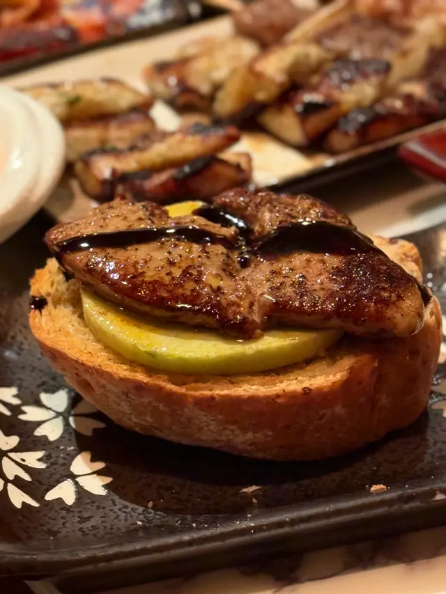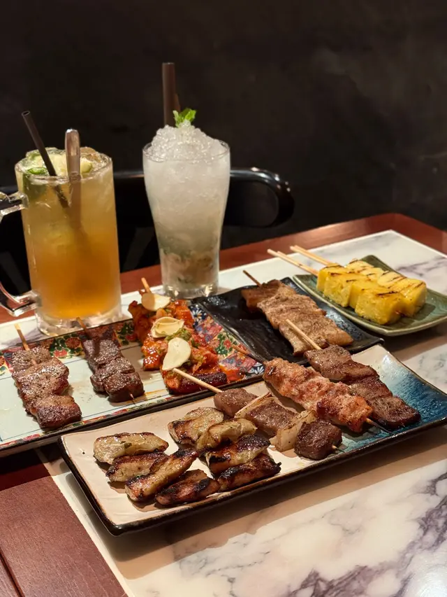 朋友想吃串燒,第一時間就想到燒烤堂。這裡有超過百款串燒,每次來都能嘗試不同的美味,絕對令人驚喜。店內環境寬敞乾淨,我們到達時幾乎滿座。食物方面,我們早已做好選擇,廣島蠔、鵝肝多士、玉子燒、波板糖、松板豬和豬大腸都是必食之選,配上一杯大生啤,實在完美。麻辣翠玉瓜 $16翠玉瓜大塊清脆,加上麻辣非常惹味。鹽燒日本銀杏 $24燒銀杏口感幾軟糯,味道清淡。和牛棒配松露一口飯 $58類似漢堡扒,加入芝士碎和蛋汁,撈飯一起食,味道濃郁,令人驚喜。豚肉節瓜波板糖 (付月見) $38豚肉片捲住節瓜片,口感層次分明,特別又美味。焦糖鰻魚芝士玉子燒 $28玉子燒甜美可口,搭配厚實的鰻魚和焦糖脆口的面層,口感豐富。焦糖青蘋果鵝肝多士 $108多士外脆內軟,鵝肝肥厚,入口即溶,令人非常滿足。浜燒日本活北寄貝 $58北寄貝軟嫩多汁,味道鮮甜,湯汁濃郁。蒜蓉燒日本廣島蠔 $48/2隻蠔肉飽滿,味道鮮甜,蒜蓉滿滿,必食之一,每人食兩只先夠。雞皮墨魚滑 $38雞皮香脆,魚滑軟彈,層次感十足。日式燒白鱔 $48鱔肉肥厚,醬汁味濃,加上蔥絲,風味獨特。椒鹽燒鴨舌 $28鴨舌軟嫩好嚼口,椒鹽香口惹味。鹽燒豚肉荔枝卷 $22豚肉捲住甜美多汁的荔枝,咸甜滋味。福岡味噌松板豬 $28豬頸肉爽口彈牙,味噌入味,甜美可口。七味汁燒豬大腸 $24豬大腸軟嫩彈牙,無異味,滷得入味,口感極佳。厚切鹽燒牛舌拖羅 $48牛舌彈牙,味道濃郁,汁多鮮美。鹽燒A4宮崎和牛 $58和牛肉質軟嫩,油脂豐富,牛味香濃。明太子雞腿肉 $28雞肉大串鮮美,搭配滿滿的明太子醬,鹹香惹味。汁燒免治雞肉軟骨棒釀冬菇 $28冬菇軟彈多汁,釀入免治肉和爽脆的雞軟骨,口感特別過癮。七寶生啤 $48生啤買一送一,超值大杯,酒味清爽,與串燒搭配一流。…查看更多