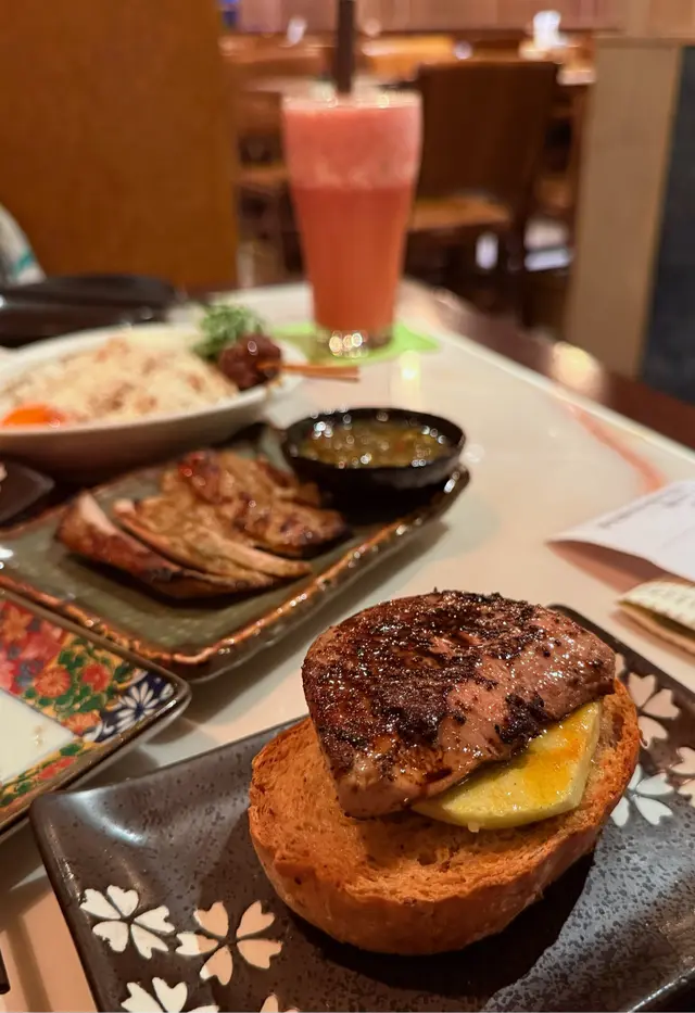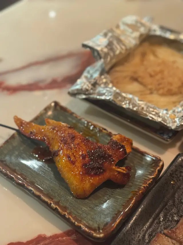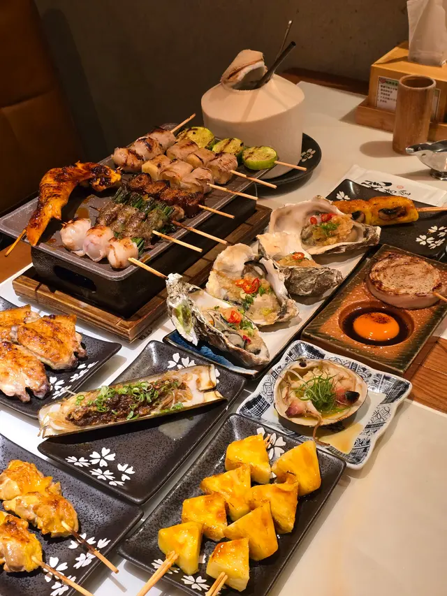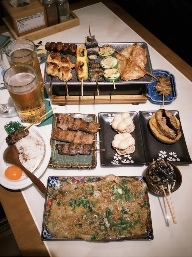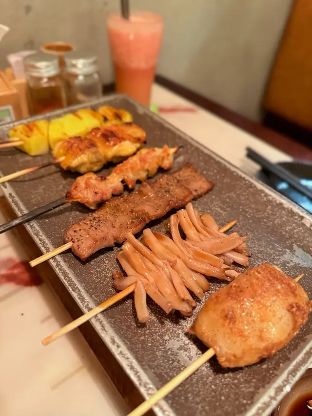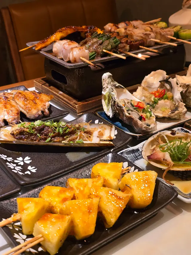 大愛🤩燒烤堂鵝肝蘋果多士,燒烤堂啲嘢食真係好高質,價錢公道味道岩!每樣串燒產品會寫清楚係邊種食品風格,有日、川、泰等等,咁就可以幫手揀心水食物!焦糖青蘋鵝肝多士真係唔可以唔食!鵝肝極度肥美,配上蘋果輕輕中和油膩感覺,而多士係芝士麵包,入邊有粒粒芝士感覺超級有層次,而且味道夾。第一次食燒馬友,勁大條魚皮燒得香脆,魚肉滑,配有辣醬油同特色醬汁。惹味蜜糖燒三黃雞全翼,蜜糖雞翼皮脆口帶蜜糖香甜,yummy!泰式豬頸肉係啲勁有咬口嘅豬,配上泰式香料嘅辣汁,成串都好多好足料。鹽燒牛舌拖羅,牛肉味道極度香濃,而且超級嫩口。免治和牛棒性價比高,牛味超香濃,上面鋪滿巨量芝士😍個飯好大。雞皮墨魚滑係我推薦,雞皮外層燒至香脆,內面係軟滑嘅墨魚滑,外脆內軟有陣陣墨魚香氣。汁燒免治雞肉軟骨,月見汁有原隻日本生雞蛋配上自家製醬汁,醬汁甜甜地同生雞蛋混合之後,雞軟骨變得更滑。蔬菜方面,牛油蒜蓉焗金菇好好食,極香濃牛油味。最後仲叫咗黑糖燒菠蘿,食到外層糖脆好得意,切好一粒粒方便食。…查看更多
