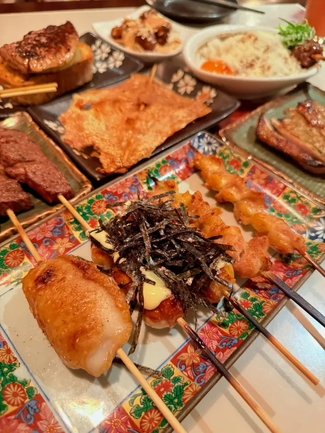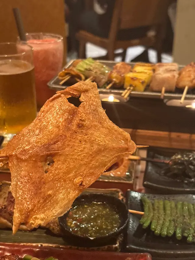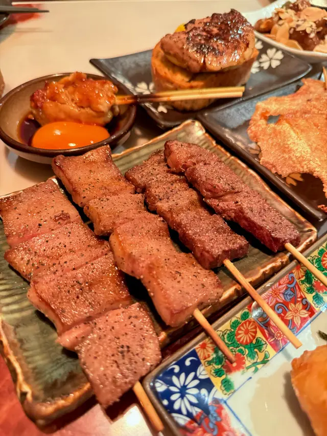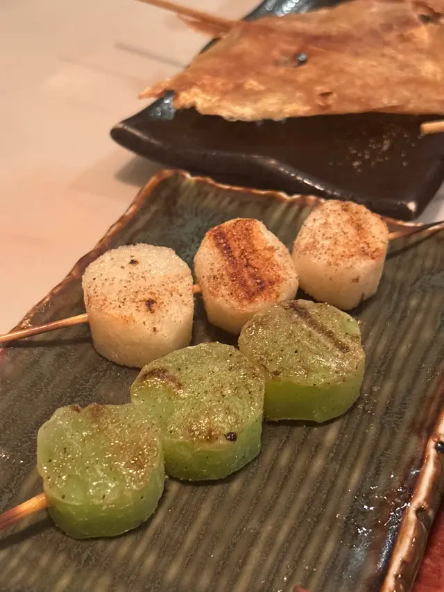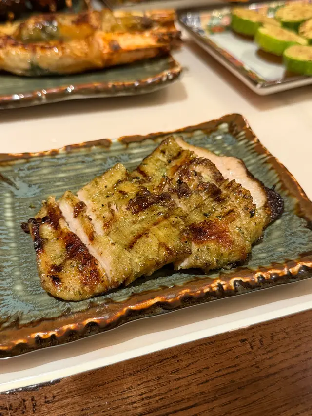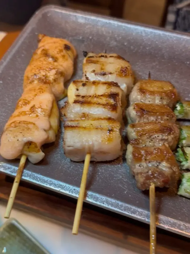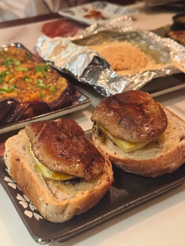 大愛🤩燒烤堂鵝肝蘋果多士,燒烤堂啲嘢食真係好高質,價錢公道味道岩!每樣串燒產品會寫清楚係邊種食品風格,有日、川、泰等等,咁就可以幫手揀心水食物!焦糖青蘋鵝肝多士真係唔可以唔食!鵝肝極度肥美,配上蘋果輕輕中和油膩感覺,而多士係芝士麵包,入邊有粒粒芝士感覺超級有層次,而且味道夾。第一次食燒馬友,勁大條魚皮燒得香脆,魚肉滑,配有辣醬油同特色醬汁。惹味蜜糖燒三黃雞全翼,蜜糖雞翼皮脆口帶蜜糖香甜,yummy!泰式豬頸肉係啲勁有咬口嘅豬,配上泰式香料嘅辣汁,成串都好多好足料。鹽燒牛舌拖羅,牛肉味道極度香濃,而且超級嫩口。免治和牛棒性價比高,牛味超香濃,上面鋪滿巨量芝士😍個飯好大。雞皮墨魚滑係我推薦,雞皮外層燒至香脆,內面係軟滑嘅墨魚滑,外脆內軟有陣陣墨魚香氣。汁燒免治雞肉軟骨,月見汁有原隻日本生雞蛋配上自家製醬汁,醬汁甜甜地同生雞蛋混合之後,雞軟骨變得更滑。蔬菜方面,牛油蒜蓉焗金菇好好食,極香濃牛油味。最後仲叫咗黑糖燒菠蘿,食到外層糖脆好得意,切好一粒粒方便食。…查看更多