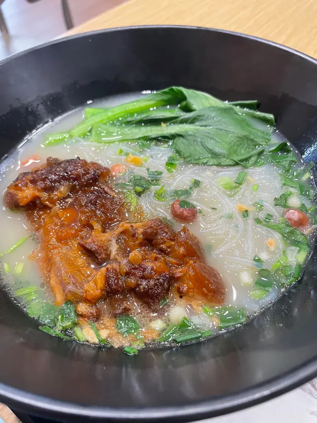 最近經過元朗發現呢間舖以為剩係可以食米線(由於本人對米線馬馬地)不過餐牌上有寫可以轉飯,而且有幾款餸都想試一試就叫職員幫我落左個"豬軟骨"飯 再加配豬頸肉黎個"雙豬飯" 價錢係$55 + 8 蚊 黎到既時候都幾驚喜,整體賣相好有兩條菜心以及一小攝青蔥營養搭配以及視覺既享受之後就到MainFood 豬頸肉 以及 豬軟骨豬頸肉:廚師用打斜既方式切,好厚身,而且肉味十足,鮮甜又不會過咸豬軟骨:豬軟骨咬入口 ,食得出係炆左一定時間既口感,都係比較鮮甜呢個"雙豬飯" 比較鮮甜,感覺兩款味道都係甜同咸而我本人幾鍾意呢種食物既味道,所以好評!!然後就叫左支腐竹特飲,跟餐價係$10呢支野睇落好少,不過飲落好有驚喜!飲落去好重腐竹味,而且仲唔算好甜我自己好怕糖水就真係糖水好重甜味,呢支感覺就係少甜既腐竹糖水個甜度拿捏得好好,但係佢得凍因為職員表示佢係無添加飲品有機會試埋其他特式健康飲品雖則價錢比一般茶記既價錢高但勝在環境整潔,而且飯量以及餸量十足!!…さらに見る