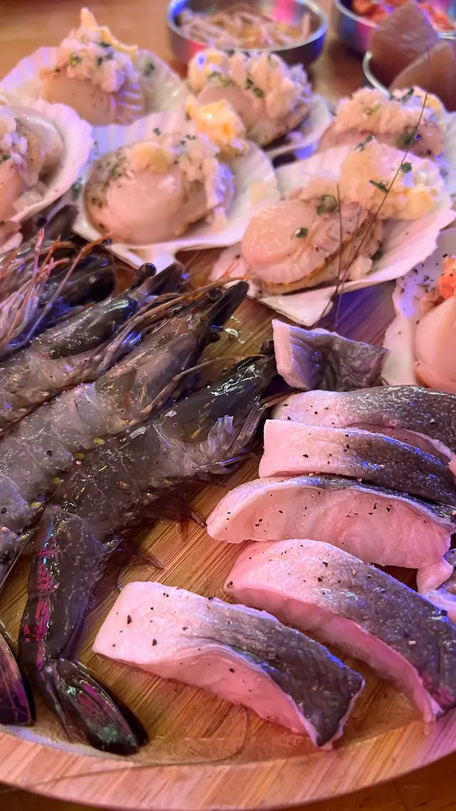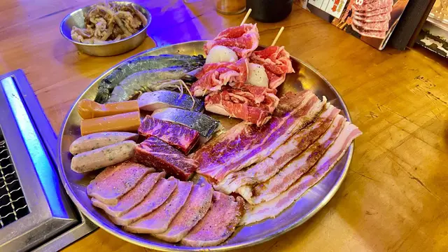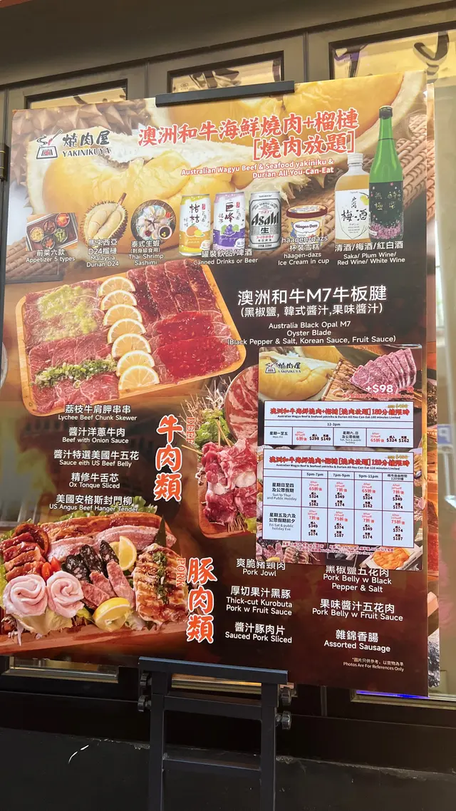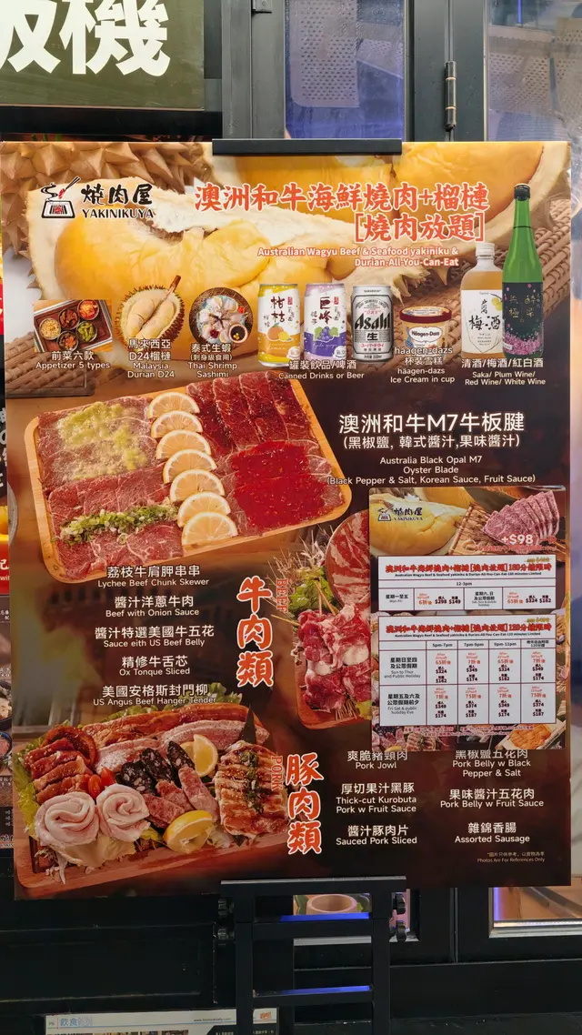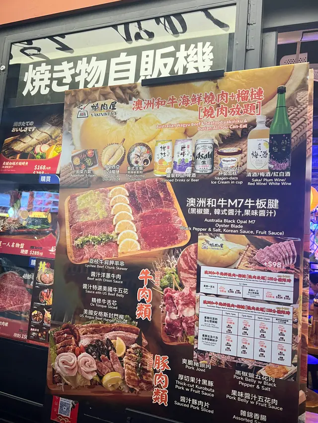 「燒肉屋」位於天后清風街,晚市7-9pm黃金時段Offer $349+10%限時120分鐘任飲任食,價錢算Market Price合理價位,但任食新鮮榴槤卻係少見 (一般放題只有燒榴槤),榴槤質素都真心唔錯,榴槤控食十件八件想回本並唔難。榴槤質感非常奶滑,但食起黎又唔會太散太淋,榴槤味適中,雖然唔係Tier 1質素,但以放題黎講,已經遠超期望值。鵝肝多士: 任食鵝肝唔係間間放題都有,加上咁大件嘅鐵板鵝肝,就算五星級酒店Buffet都未必Offer到,鵝肝香滑唔乾,含非常豐富油脂,香而不膩,多士香脆,非常香口惹味。燒白鱔: 自行燒至皮肉香脆,加上鰻魚醬汁,味道香甜而鮮味,而且肉質十分爽滑彈牙,一食就知好新鮮。蒜蓉牛油帆立貝: 帆立貝肥美厚肉,每邊燒兩分零鐘唔洗太熟,肉質滑嫩,帶濃郁牛油及蒜香。牛肉選項有澳洲和牛M7牛板腱、荔枝牛板腱串、精修牛舌芯、醬汁羊蔥牛肉、醬汁特選美國牛五花、美國安格斯封門柳: 當中美國安格斯封門柳及牛舌芯比較出色,封門柳厚切,真係一件件嘅牛柳,而並非一片片嘅薄牛肉,其肉質非常幼嫩,富肉汁,牛味亦好濃郁,算係今晚最出色嘅肉類;牛舌芯厚薄適中,肉質爽滑有嚼勁,肉味亦重。豚肉及雞肉嘅選項都唔少,但由於本人為牛魔王,基本都無特別食豬及雞;飲品方面居然連Somersby蘋果酒都有,甜品有Haagen Dazs雪糕、豆腐/檸檬雪葩等等。…查看更多