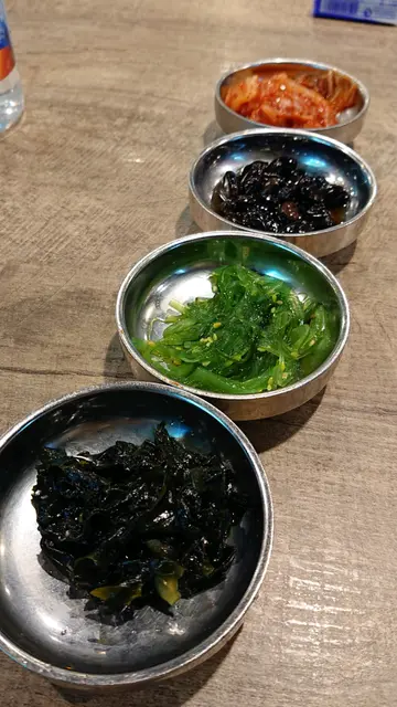 餐厅既店员有几个都系讲韩文,你同佢讲简单中文,佢都明明地既,但想问野就揾反个讲广东话会好D原本大酱锅系冇辣, 但友人实在好想食辣野, 店员为有攞个辣粉俾佢自己慢慢加,点知友人直接就 倒哂落去, 好彩依只辣粉唔系好辣姐, 如果系劲辣既话都唔知点食各份肉都两块,为左节省时间,各烧一块好似快D,唔知系咪雪得太耐, 牛牛一路煎一路出水(仲要系劲多水, 好难煎得靓,可能系我技术问题拉) 个人觉得粒粒牛算系比较好食,其他就一般般第三碟黑色豆豆,虽然食哂都唔知系咩,但喊喊地又几有口感