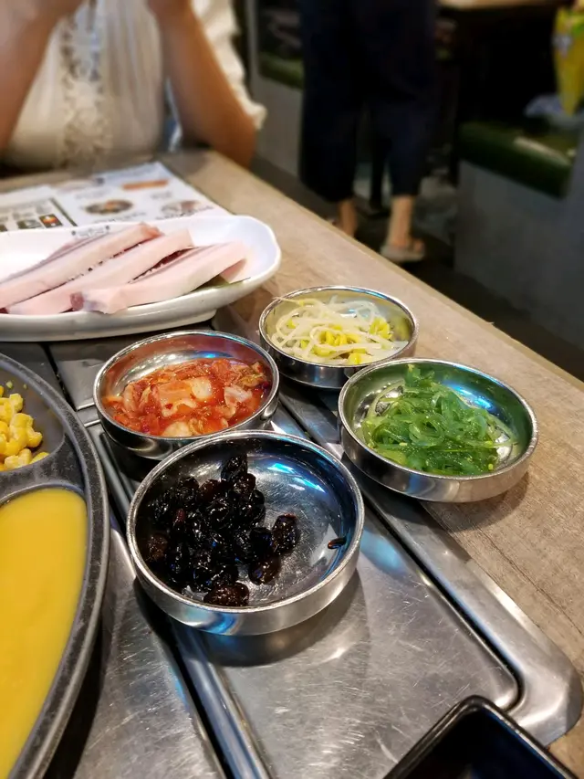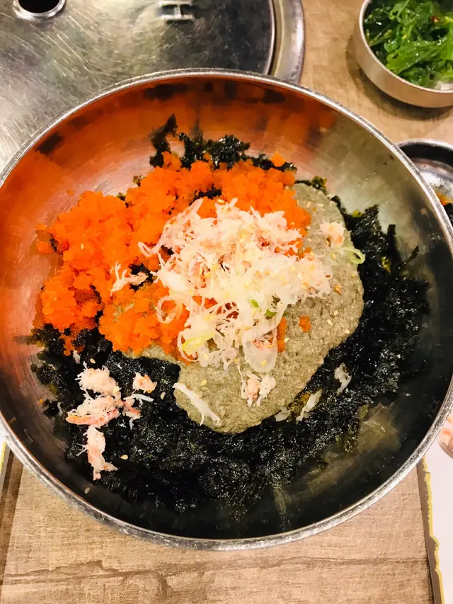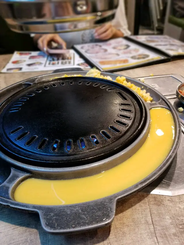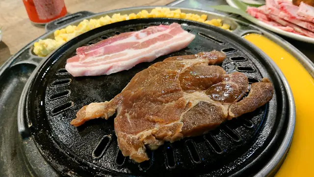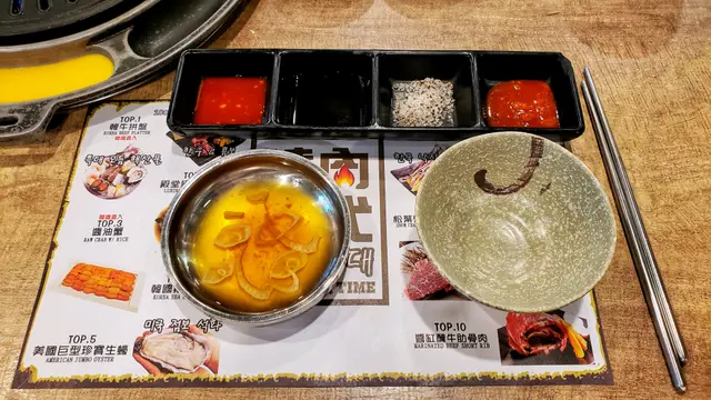 餐廳既店員有幾個都係講韓文,你同佢講簡單中文,佢都明明地既,但想問野就搵反個講廣東話會好D原本大醬鍋係冇辣, 但友人實在好想食辣野, 店員為有攞個辣粉俾佢自己慢慢加,點知友人直接就 倒哂落去, 好彩依隻辣粉唔係好辣姐, 如果係勁辣既話都唔知點食各份肉都兩塊,為左節省時間,各燒一塊好似快D,唔知係咪雪得太耐, 牛牛一路煎一路出水(仲要係勁多水, 好難煎得靚,可能係我技術問題拉) 個人覺得粒粒牛算係比較好食,其他就一般般第三碟黑色豆豆,雖然食哂都唔知係咩,但喊喊地又幾有口感…查看更多