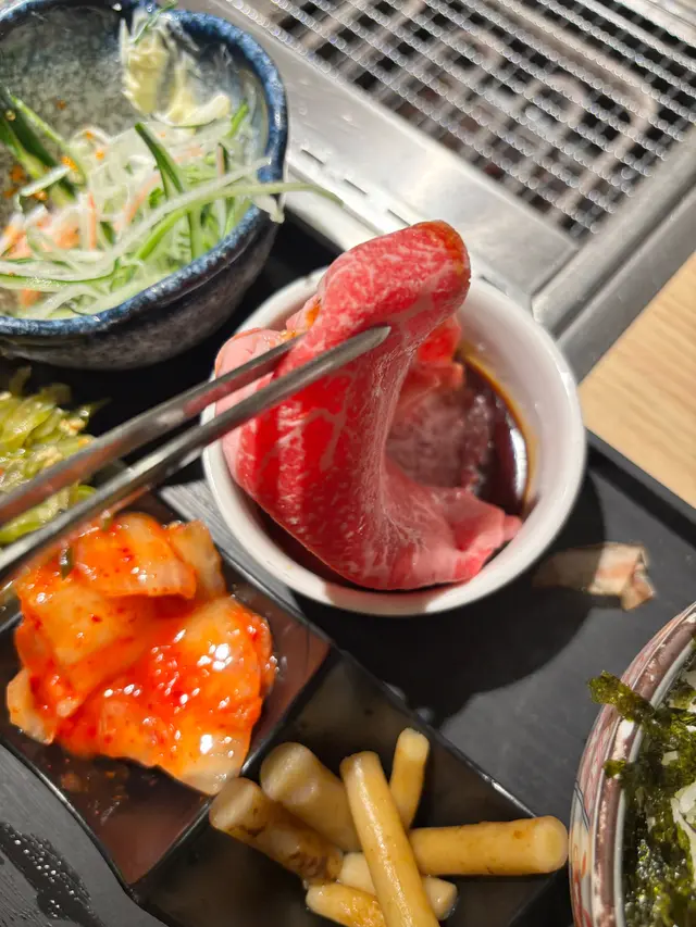 📍燒肉 JuJu (旺角)旺角洗衣街113號地舖這裡的環境舒適,讓人感到輕鬆自在。我點了一份牛舌及美國安格斯牛扒套餐,搭配泡菜、黃金粟米濃湯和白飯。✨洋葱蒜蓉味牛舌洋蔥和蒜蓉的香氣充分滲透在牛舌中,牛舌的口感軟嫩,煎至微微焦香,能提升整體的口感層次。✨美國安格斯牛扒套餐黃金粟米濃湯滑順,帶淡淡甜味。泡菜酸辣開胃。白飯是完美配角,粒粒Q彈分明。安格斯牛肉質細膩、味道濃郁多汁,肉質緊實而富有彈性。————————————————————整體用餐體驗✨味道(4/5)✨環境(4/5)✨服務(1/5)✨性價比(4/5) …查看更多