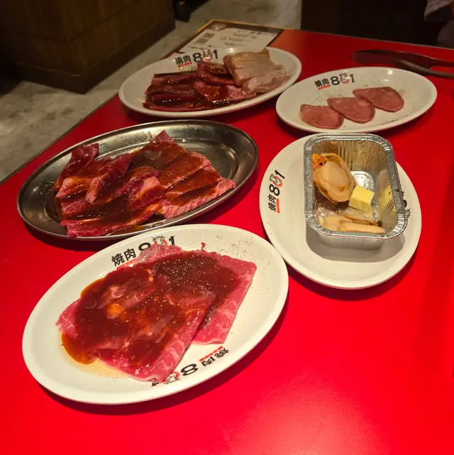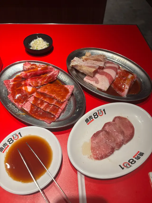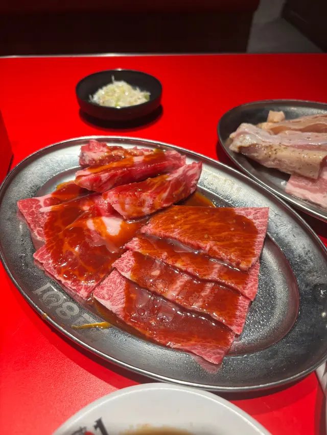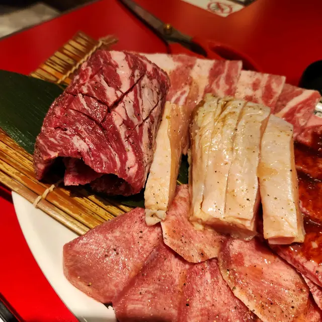 7月1日見有71折,飲品都有折,所以入去食燒肉套餐。我地揀左原價$498的[志]盛 燒肉套餐,加錢要白飯及味噌湯,或冷麵套餐。地方都寬敞舒適,2人也可以坐卡位,夠哂位放食物及坐的舒服。套餐有鹽味牛舌、黑毛和牛腹柳小排、黑毛和牛上肩肉、極上厚切牛胸腹柳、蔥鹽味雞腿肉、黑豚,2人前份量十足又豐富。鹽味牛舌好薄好快熟,口感爽脆微彈,味道好。黑毛和牛腹柳小排,好嫩有咬口,油脂分佈平衡。黑毛和牛上肩肉,柔軟富肉汁,牛味濃郁。極上厚切牛胸腹柳,超厚超份,燒至外層香口,剪成小塊燒熟即食,肉感滿滿,牛味突出,多肉汁又香口。蔥鹽味雞腿肉,加左蔥鹽好惹味,雞腿肉好嫩彈。黑豚好肥美五花肉,好有油香,最好用生菜夾著食或配泡菜食,消膩又酸酸辣好開胃。。冷麵夠哂冰凍爽口,麵質彈牙,配熱辣辣燒肉,真係降溫必食,又可清清味蕾。日本米吸哂燒牛肉的肉汁,好正,燒肉配白飯也是必須。檸檬highball及檸檬燒酒,好清爽又唔會太重酒味,清新爽口,飲完少醉,氣氛很好。…查看更多
