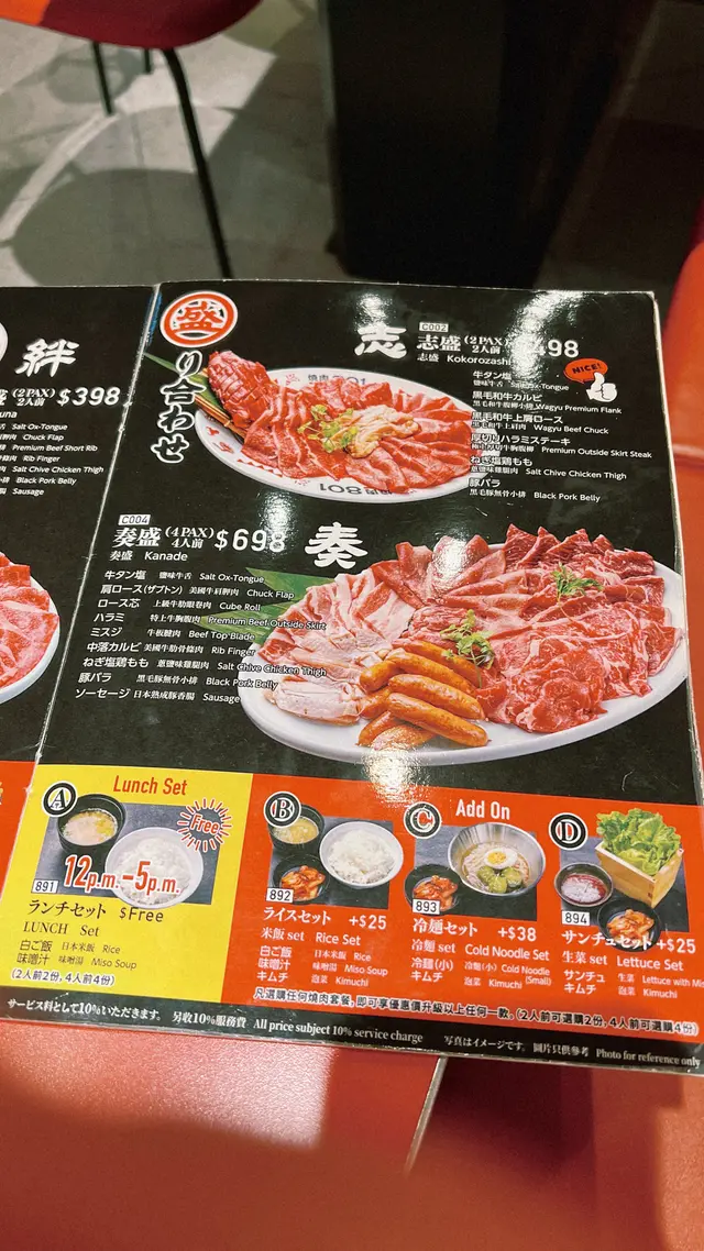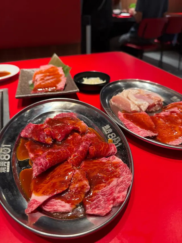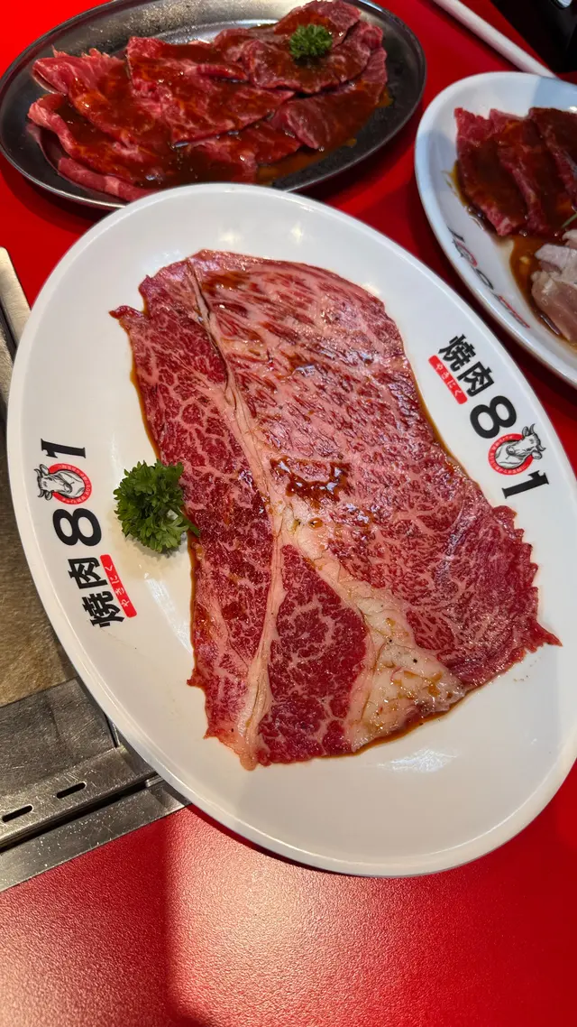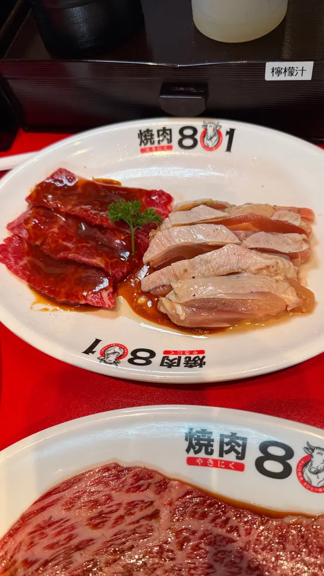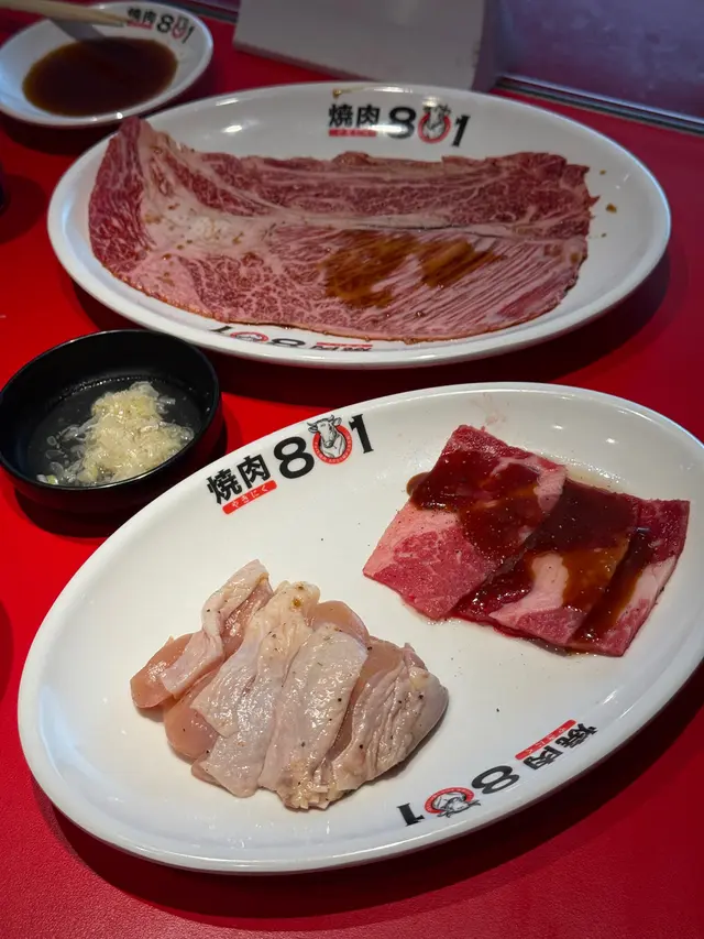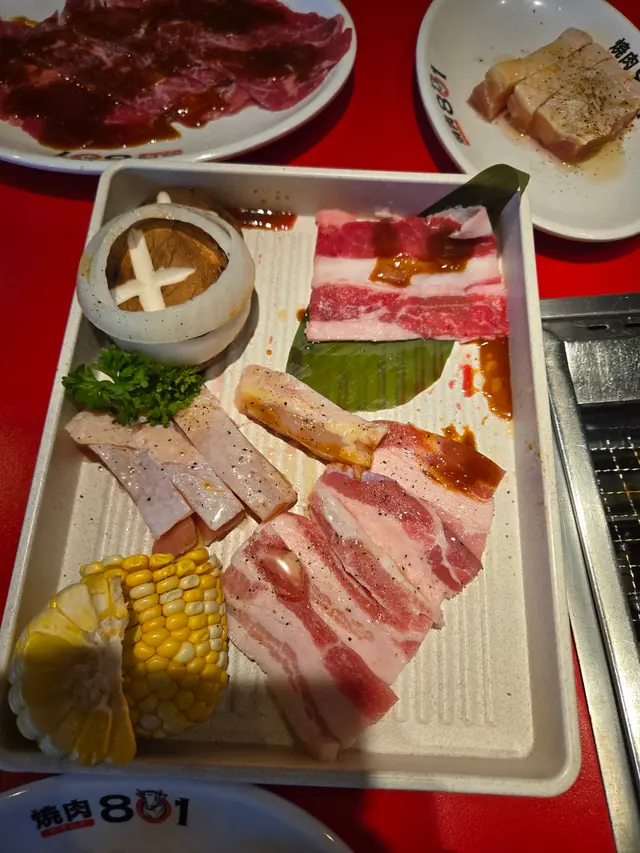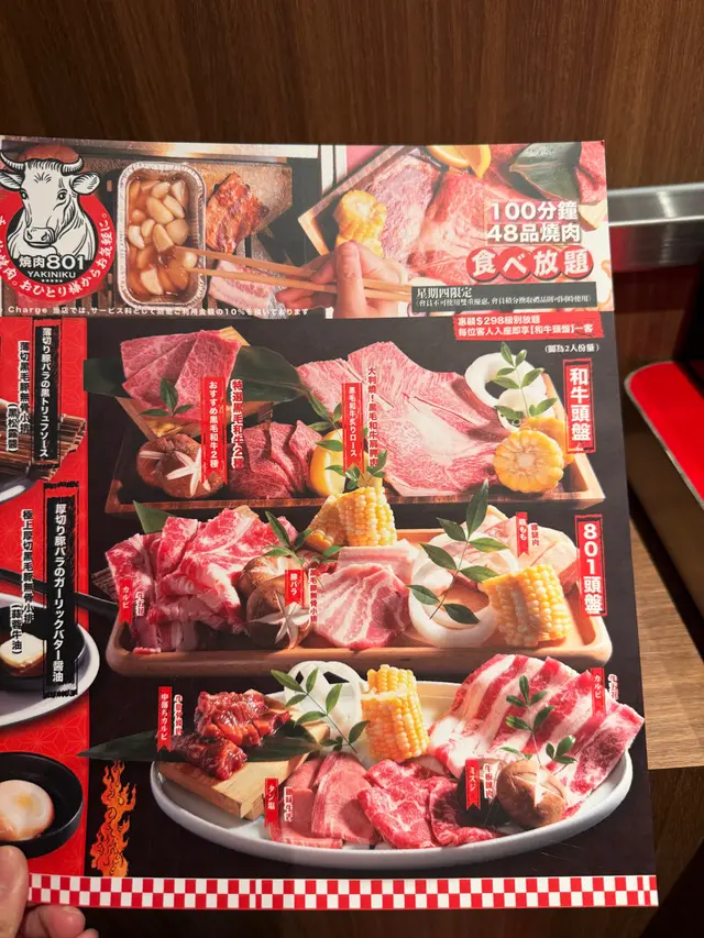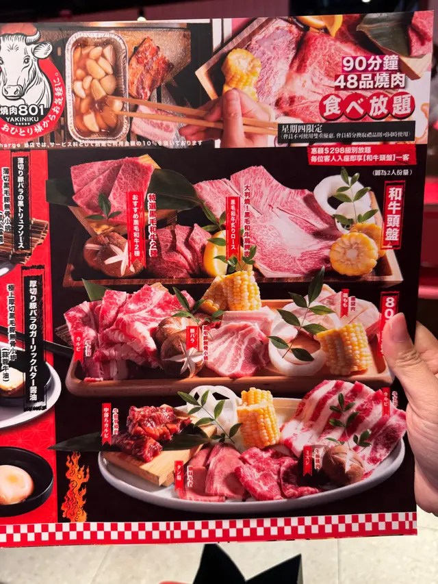 好耐冇食過燒肉放題🔥上星期同老公去左位於荃灣廣場既Yakiniku 801✨餐廳環境乾淨舒服,空間感大!一入座店員就向我地介紹逢星期四限定既放題🥩有兩款唔同價錢既放題💥✿ 100分鐘放題套餐(逢星期四17:00-21:00) ✿✧ 基本放題+精選801頭盤:成人$198、小童/長者$158✧ 基本放題+黑毛和牛頭盤:成人$298 、小童/長者$258我地揀左基礎放題+黑毛和牛頭盤💗食物以QR Code落單,送上既速度好快,超方便👍🏻🐮和牛頭盤有黑毛和牛肩胛肉、特選黑毛和牛🥩✨和牛油脂分佈平均,食落口感細嫩,唔會韌,牛味香濃,勁高質🥰🥩肉類肉類款式有極多!!而且仲可以揀唔同醬汁,包括燒肉汁、檸檬汁🍋配肉類味道好夾🤩牛方面有特上牛肋條肉、牛肋骨條肉、鹽味牛舌、牛五花等等~其他肉類方面有黑毛豚無骨小排、厚切煙肉、蒜香雞腿肉、雞翼等等🐷🐥身為雞翼控當然要雞翼✌🏽雞翼有分原味同麻辣味!食落口好夠Juicy入味,雞肉好嫩滑!牛舌我都好鍾意❤️口感好爽,不斷encore🥳黑毛豚有驚喜,好厚切!肉質鬆化,味道濃郁,又唔會鞋口~滿足💕🦐海鮮除左肉類,海鮮有赤海老同魷魚🦑赤海老好新鮮,肉質細膩~魷魚爽口彈牙,好有咬口,唔會太韌🥰🥢揚物、湯、米麵佢既炸物款式好唔錯,有炸薯條同唐揚炸軟骨,熱辣辣,好香口😋另外仲有章魚小丸子🍡、日本米飯、紫菜飯、咖喱飯、泡菜冷麵🍜、叉燒烏冬、檸檬冷麵等等。我同老公分別點左紫菜飯同泡菜冷麵,紫菜飯份量好多,紫菜既鮮味同米飯味道好夾👍🏻泡菜冷麵清爽可口,麵條順滑,配搭酸辣既泡菜,好開胃,夏天食好消暑💦🧃飲品加$20就可以升級無酒精類罐裝飲品無限暢飲~可以揀可口可樂/Coke Zero/雪碧/烏龍茶/清熱菊花茶/檸檬紅茶/荔枝紅茶/巨峰提子等等💜如果鍾意飲啤酒🍻可以加$58升級生啤無限暢飲🍺🍮Haagen Dazs🍦食燒肉食到最後一定要食返雪糕、雪條降降溫😝 放題包每人一杯Haagen Dazs 雪糕杯🥰🍦食完大滿足😌…查看更多