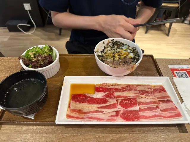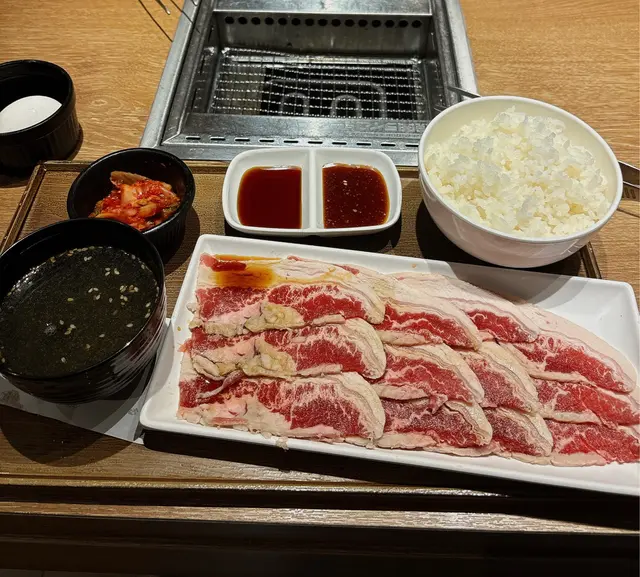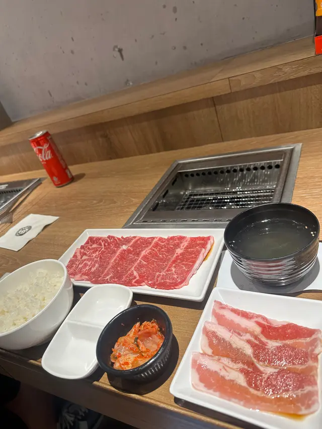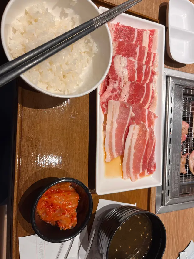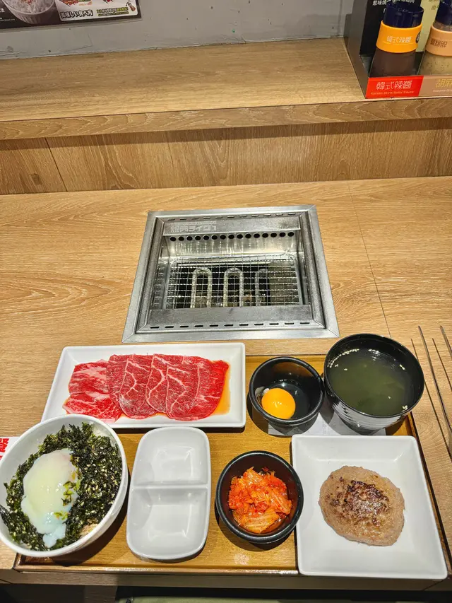 平時喺葵芳行街一直都見到好多人排隊,今日夜晚6:00左右見到比較少人,即刻同女朋友衝入去試吓。我哋坐喺最前面嘅吧台,兩個人一人一個爐,但我見到中間嘅一啲位需要兩個人共用一個爐,食之前可以注意一下。睇睇最平嘅100g燒肉套餐都只係五十幾蚊,套餐跟左個飯同碗麵豉湯,小食就可以揀沙律或者泡菜,我哋就揀咗沙律。我哋兩個平時就唔係食好多夜嘅人嚟講,食完就會覺得啱啱好飽。燒肉嘅調味料幾好,特別係個BBQ醬汁,幫個燒肉加好多分。總括係肚餓口痕冇咩錢想食燒肉嘅一個好選擇😋查看更多