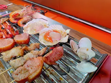 呢间烧烤店名叫做烧虾虾🦐🦐,顾名思意,都知道食虾为主,地方够大,干净企理,唔知食物质素如何呢?一齐入去试下!呢度最出名就系流水虾🦐,食落去鲜虾好新鲜,肉质鲜嫩。面头撒上少少黑椒提高鲜味,无论口感同味道都做得非常出色。生蚝,肉汁超级多,好重海水味。🦪扇贝,啖啖肉。螺,螺头肉好Q弹,好入味。海鲜陪佢地既啤酒就最适合喇,而且系任饮架!鸭胸同埋肠仔都系烧烤必不可少既食物,烧烤落少少孜然粉,同D食物都好夹。😋😋总体来好抵食,CP值非常高,🥂值得推介之选,最后要赞下D 雪糕,高质!
