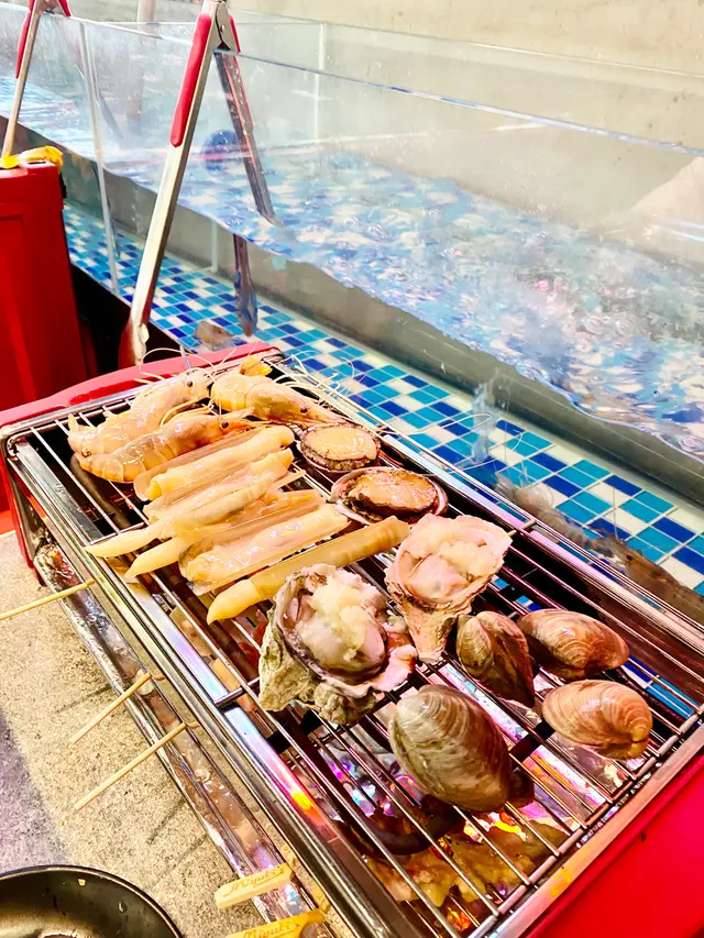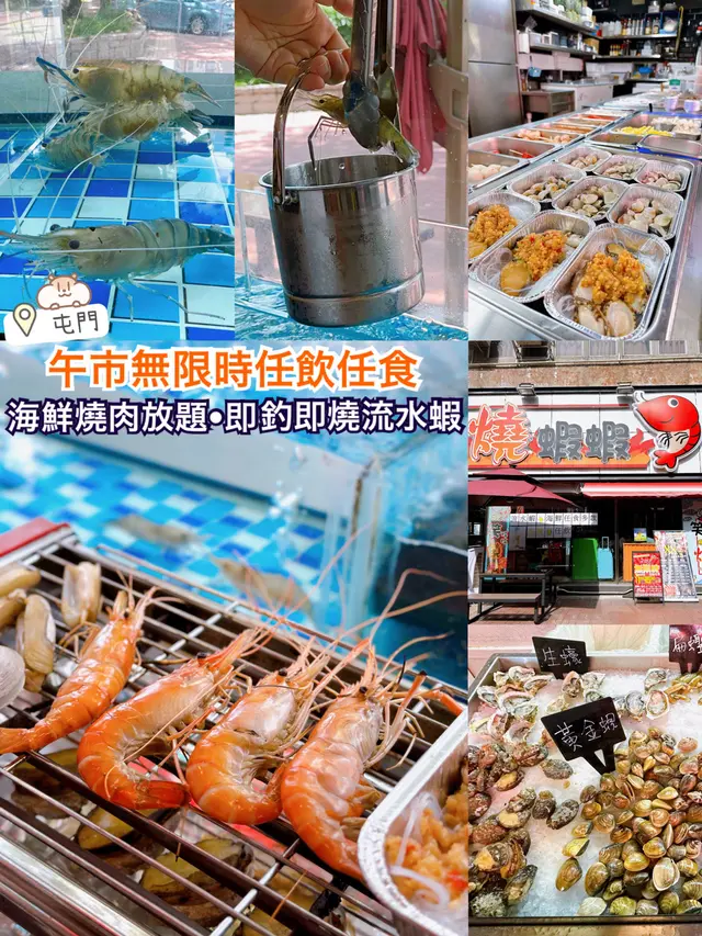 去燒蝦蝦🦐夾流水蝦🥰再擦餐飽!仲有好多任燒海鮮呀~平日中午超抵食,仲要無限時,由11:30-15:30 食足4小時,可以慢慢食慢慢燒🔥,人頭$288 🫶🏻so happy 。屯門依間就喺屯門巿廣場附近,位置方便。用餐區好大,坐卡位旁邊就係流水蝦缸,隨時都可以夾上來燒。蝦肉有好多蝦膏,爽口鮮香。自助區嘅海鮮檔口,有鮑魚丶🦪蠔丶原條魚丶蜆丶東風螺等等,整體都新鮮。我就最like 鮑魚,夠新鮮不停郁。可以自己加埋多款調味,想牛油燒丶蒜燒丶孜然川式,咩都得。其他配料選擇都好多,肉類丶丸類丶蔬菜類。最like 有3種口味嘅雞翼,有款超辣好刺激,燒完皮脆肉嫩好香口🥰仲有燒菠蘿丶燒韭菜丶燒粟米我都好like 。最後嘆埋雪糕雪條超滿足。查看更多