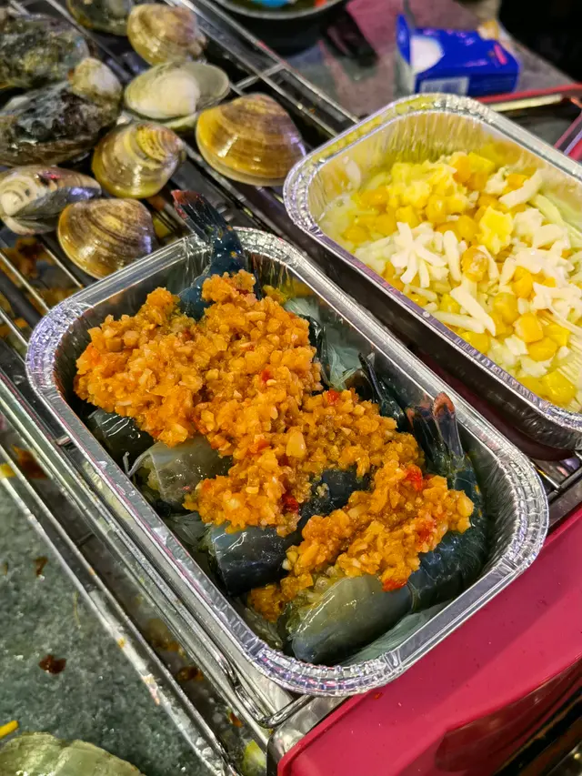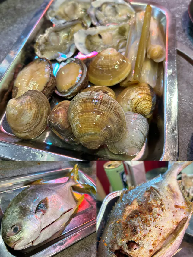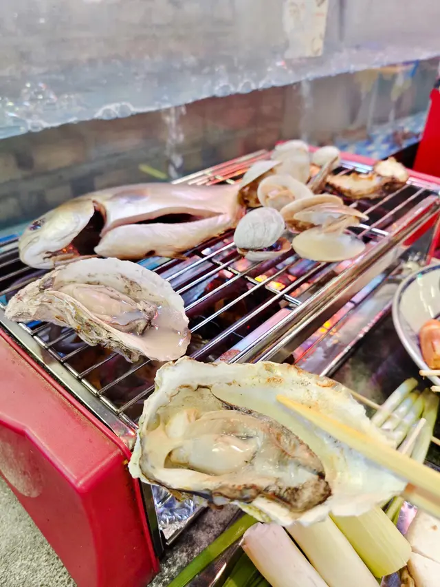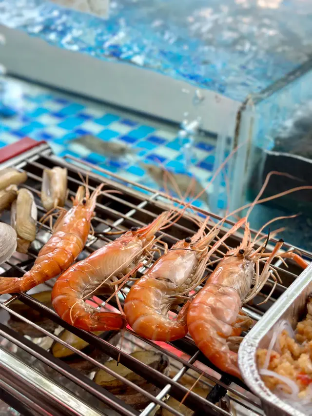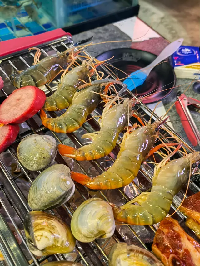 流水蝦,夾入冰水,再烤熟,蝦好新鮮,有好多蝦膏!除咗蝦,就係海鮮,有蟶子、生蠔、花甲、沙白、桂花蚌、原條黃立倉⋯⋯大蜆、蟶子都鮮甜多汁!亦都有燒肉、蔬菜之類仲有各式啤酒任飲查看更多