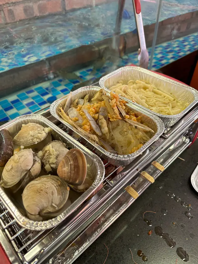 🔹午市無限時任飲任食 (周末及公衆假期) $298每枱隔離都有一個水缸💦一坐底店員就會倒入新鮮流水蝦🦐每隻都好生猛,食哂可以叫店員再加喔🤣我地第一次嚟,店員提我哋夾流水蝦上嚟後,要先放入冰水冷卻一陣🧊再放上爐燒🔸海鮮類主角大頭蝦隻都好新鮮又有蝦膏,食落甘香,蝦肉爽滑🦐仲有有蠔🦪鮑魚、扇貝、鮮魚🐟蜆、螺、蟶子等等😆鮑魚鮮甜爽彈,蠔同埋大蜆海水味十足🔸肉類、蔬菜類、丸類丸類:有芝士年糕、番薯、龍蝦丸,芝士腸,蟹柳、貢丸肉類:豬🐷牛🐮雞🐓款式應有盡有蔬菜類:主要有金菇🍄同埋紹菜🔸麵包、粉麵有唔同麵包,仲有自助淥麵區,可以整番個撈麵食下🤣🔸熟食區有炸物、涼拌海蜇、芝麻八爪魚、白雲鳳爪等等🔸飲品區連酒杯都雪凍埋十分貼心🍻生啤、啤酒、清酒、梅酒都有🤤仲有好多汽水及韓國飲品想飲熱飲嘅可以自己炮製養生花茶🔸甜品區有Bite size 嘅糕點🍦仲有10幾款雪糕雪條任食查看更多