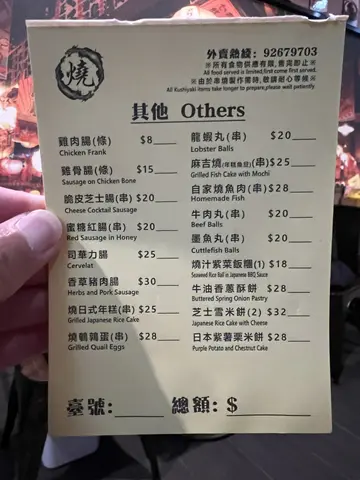 朋友介绍之下, 前晚终于去试左呢间隐世串烧店…🤩忍唔住出post系因为佢同一般串烧店唔同, 由于当晚食得太多野, 例如有鸡软骨, 鸡皮, 豚肉露笋卷, 牛舌, 鸡泡鱼干等等呢D一般串烧店有既食物.真系影唔到太多….好多店铺既串烧都会落孜然粉, 变左每样野食都系同一个味…但呢间老板坚持用港式烧法, 每样食物都食返本身果种鲜味😋👏🏻佢果个多春鱼真系不得了, 连我平时唔太食鱼既都忍唔住再encore😋😋因为老板烧到好香口, 完全冇腥味….但讲到当晚最出色既系烧海鲜, 有圣子, 北寄贝,元贝等….完全系劲鲜甜, 爽口☺️不过当然海鲜要预早一日落单, 老板坚持当日早上先去买货保持新鲜.😃仲有就系酒水都相当平, 一杯550ML既Sapporo生啤🍺先系$48….. 虽然呢间铺地点有D隐蔽, 但地铁站行去都只系2分钟既路程都好方便😉最重要系食物同服务都一流, 性价比好高. 会返转头帮衬既小店🥳 …查看更多