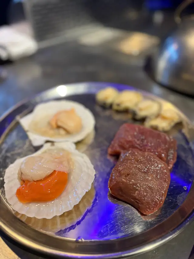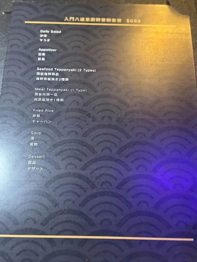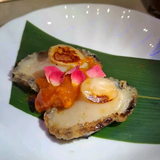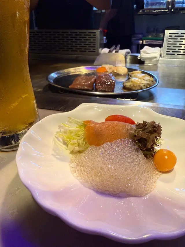 之前同朋友嚟過呢間位於大埔美豐花園嘅燚,上次嚟食已經覺得餐廳裝修好有神秘感。嚟到先飲返杯啤酒!頭盤沙律,煙三文魚卷起爽脆野菜,加上泡泡狀醬汁,呢個食法好有新鮮感!呢道芝士Parma ham加菠蘿,味道很有層次,夠曬特色。生蠔肉厚美味,鮮度十足。扇貝燒得好香,入口口感剛好唔會太韌。牛肉配上大量蔥蒜,熱辣辣食非常香口。雞扒煎得好香,配牛油汁最正。味噌湯入面嘅豆腐花非常精緻,好睇又好食。炒飯炒得粒粒分明,飯粒有咬口。甜品係紅酒煮雪梨加上吉士醬,雪梨軟滑入味,又係一大亮點!…查看更多