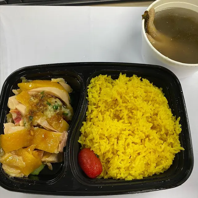 普普通通,5算特別 SuzukiSo0814等级32020-12-06643 瀏覽 關注 午餐經過佢,就買左一個無骨海南雞飯返公司食。其實45蚊包老火湯,價格可以啦。一打開,見到吸引既油飯。但睇個比例,雞又真係少左d。因為仲有d蘿蔔絲係底墊高左d雞,睇落就多左甘。而油飯就真係多啦,我諗淨食飯都夠飽。油飯係香口,食落5會糊,而油香係會提升食欲。但雞就一定係皮滑,但5係肉嫩。因為咬落去係有d鞋身,似係過咗火侯。做5到入口煙韌既嫩滑雞肉口感。而因為我選無骨,令雞肉比較細件,雞肉味道轉零散而少咗吸引力。四十幾蚊一個飯,算係甘上下啦…查看更多以上食評乃用戶個人意見 , 並不代表OpenRice之觀點。讚好分享普普通通,5算特別 營豐海南雞專門店 (電氣道) https://s.openrice.com/QrLT00aax00檢舉 張貼 評分3味道3環境3服務3衛生3抵食用餐途徑堂食