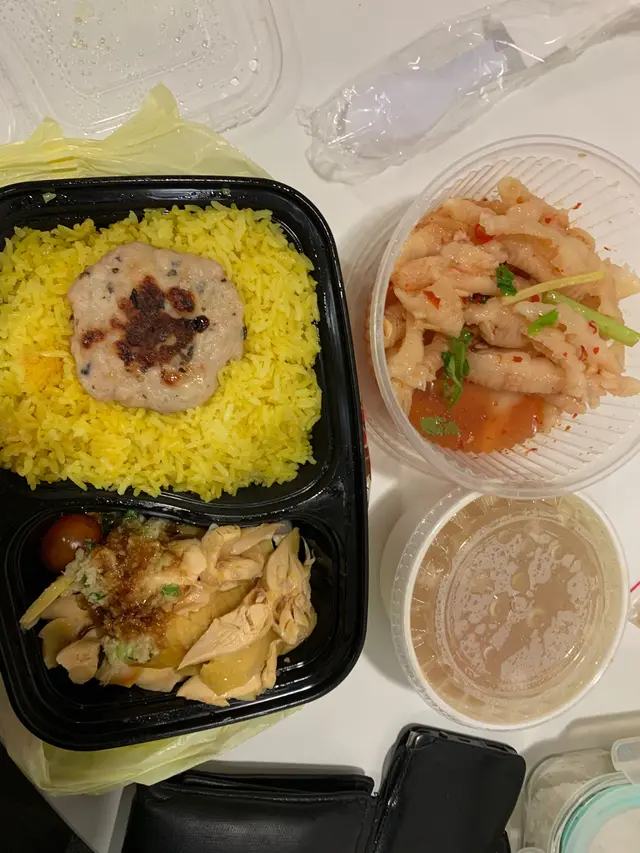 海南雞飯 edas.food等级32020-10-22487 瀏覽 關注 新店已開一段時間有好幾次lunch時間行過都見到好多人排隊買飯就買黎試下店內廚房細小 只供外賣門面掛滿不同口味既雞 有小量小食: 鳳爪 雞腎 豬柳 金沙骨 豬手 豬腳 等等….預先打電話叫定外賣去到就有得扲招牌脫骨海南雞飯 $45(可以加幾蚊 加塊蓮藕餅)雞肉質好滑 加上落左d汁甜甜地 好好味食海南雞飯當然要配油飯油飯落左好重手薑黃粉 可惜冇油香 個飯仲有d乾建議叫白飯安全d個老火紫菜雞腳湯 個廚師可能唔記得落鹽 淡而無味總括:海南雞係好味 建議叫白飯…查看更多以上食評乃用戶個人意見 , 並不代表OpenRice之觀點。讚好分享海南雞飯 營豐海南雞專門店 (電氣道) https://s.openrice.com/QrLT0Lfew00檢舉 張貼 評分3味道3環境2服務3衛生3抵食用餐途徑外卖自取