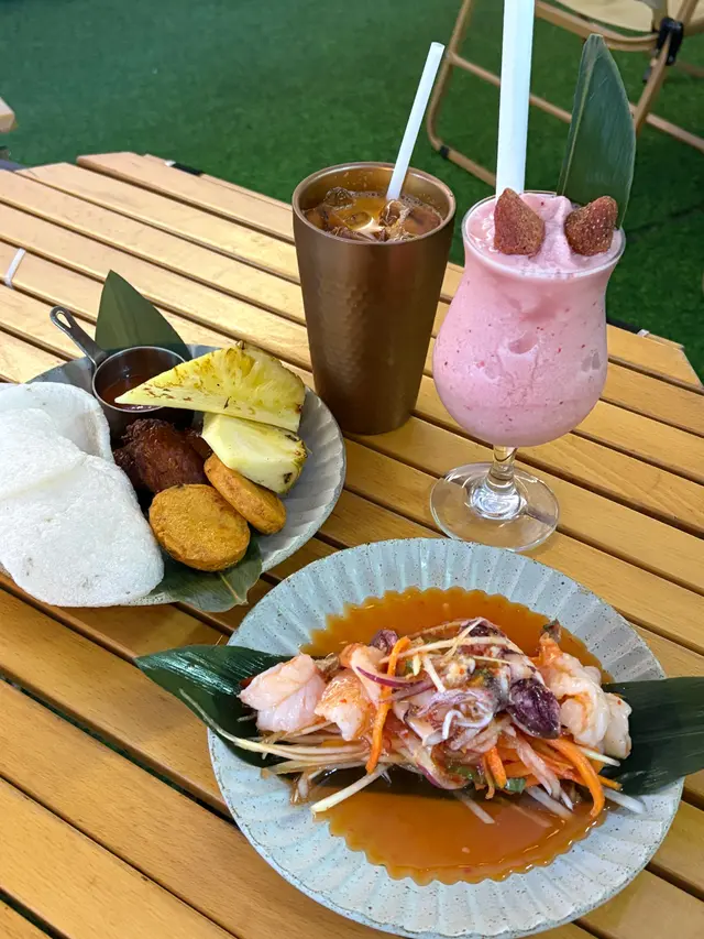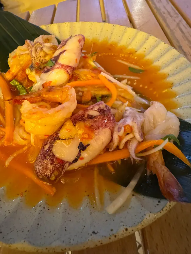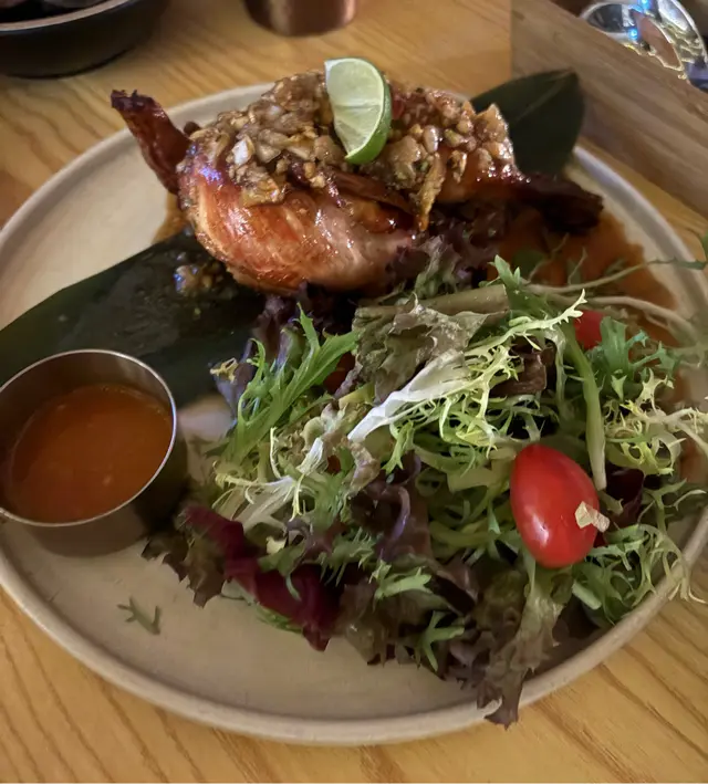 先嚟兩杯嘢飲紅都面哂主角係西柚,檸檬,最啱減肥的女士,酸酸甜甜幾好味。叢林的秘密主要係雜果汁,加埋百香果同好多服新鮮的生果配料,味道層次豐富。越式海鮮沙律凍盤主角係生蝦,放入木瓜沙律做底,辣辣地酸酸味好開胃。迷你小食拼盤有雞翼,蝦餅,燒菠蘿,蝦片,賣相精緻,樣樣新鮮出爐,味道唔錯,尤其係雞翼和蝦餅,熱辣辣。蒜蓉魚露炒芥蘭苗炒芥蘭,佢用咗蒜蓉同魚露去炒,好惹味而且份量十足大大份。泰式椰香海鮮燴意粉醬汁少少辣,酸酸甜甜,有椰香。而海鮮方面份量都唔少,有大蝦,魷魚酥同埋魷魚筒,值得推介。香草焗野雞仔(半隻)配沙律野雞仔外邊比較少食,外皮香脆,肉質嫩滑,而且沙律菜份量多。中途有玩遊戲時間,增添氣氛而且百發百中,獎品係雪糕或者啤酒,仲要係香港手工啤酒露啤好有心,而雪糕同樣製作認真。總括嚟講,又有得食又有得玩,而,仲有歌聽,氣氛好好,最啱一班朋友一齊來慶祝生日和渡過美好的晚上。