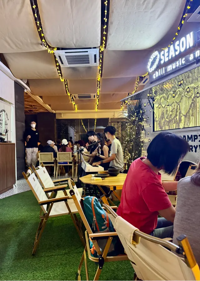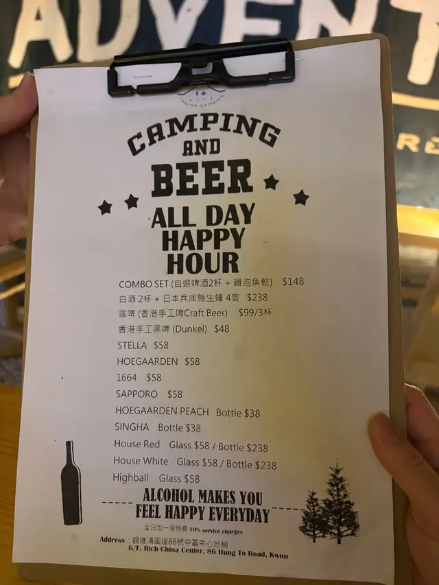今晚去咗觀塘一間以露營為主題的餐廳,去到非常多人,現場氣氛熱鬧,有live Band,又有遊戲玩。