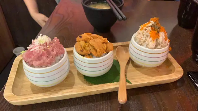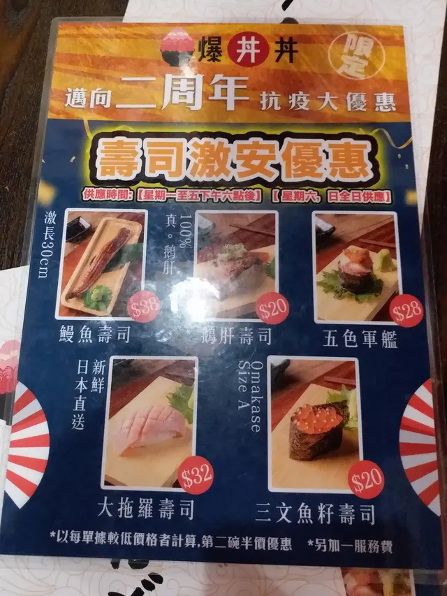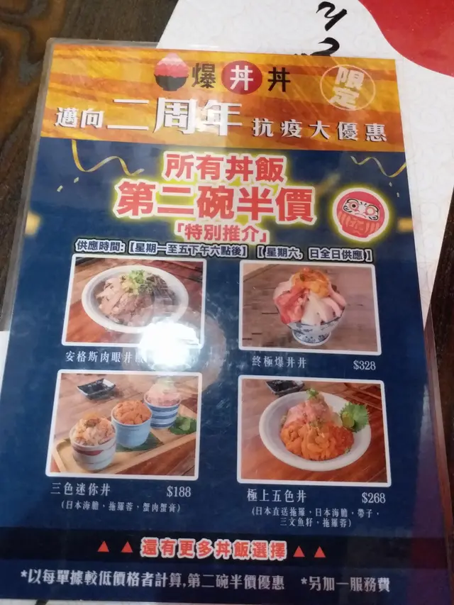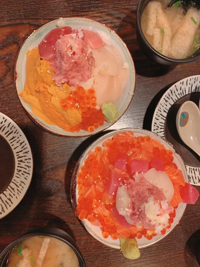 記得有次與友人去過試食後覺得味道相當美味👍材料相當新鮮,所以今年生日再次光顧品嚐!當踏進餐廳時看起來環境不錯,帶點日本🇯🇵餐館的感覺。可能都還未到食飯時間加上餐廳地點位於小巴站/街市附近,人流量不多。於是便看到餐牌上的推廣就是買第一個丼飯第二個會有半價優惠,便選擇了極上五色丼/特上爆丼丼/迷你拖羅飯/原隻鮑魚魚生飯來試試。大概五分鐘左右食物已來到了,賣相相當吸引讓我們忍不住讓手機拍照留念⋯我被它們的海膽吸引住/急不及待便試試其味道,果然與日本🇯🇵的一樣⋯帶有淡淡的海水味道十分鮮甜不會有腥味/相當美味可口🥰值得一試!而三文魚/鮑魚/拖羅也是相當新鮮,口感都不錯👍…查看更多