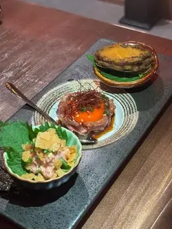 厚福街向來多美食,今次黎左呢間居酒屋🏮 而餐廳晚市6點後做緊$38/2串(需同款)咁抵食,當然要入嚟捧場啦!蒲燒鰻魚原條鰻魚奉上,吃下去有微微的焦香口感,仲有鰻魚汁的香味~作為鰻魚控的我,尤其滿足!蟹籽沙律🥗青瓜🥒絲新鮮爽脆,配上蟹柳絲及蟹籽粒一起吃,有醬爆口感,開胃菜一流~油甘魚刺身新鮮肥美,有好濃郁的魚油香,size剛剛好放進口吃,一口刺身很滿足三文魚刺身應該用左部分三文魚腩,吃下去有魚油香散發到整個口腔~油甘魚鮫魚鮫啖啖肉!而且不會有任何細骨刺,岩晒我呢啲懶人👍配上蘿蔔蓉及自家製醬汁一起吃,更有提鮮作用!燒明太子明太子鹹鹹辣辣,外層燒成焦香口感一定要配上青瓜🥒片及蒜頭🧄片一起吃,咁就可以中和口腔的鹹度&辣度~黎到串燒環節!阿波尾雞翼一夜干雞全翼原條奉上!燒成金黃色,吃下去惹味開胃!雞翼雞皮燒得好香脆,師傅調味剛剛好,啖啖肉好滿足!骨付雞肉腸脆皮腸,內裡啖啖嫩嫩的雞肉本菇牛肉卷本菇juicy多汁,用牛肉包裹住,本菇可以中和少少的肥膩感~蝦夷蔥牛肉卷蝦夷蔥超級細條,呢種蔬菜🥬都係第1次食,吃下去有微微的苦澀味道,但又不至於難以吞嚥,味道挺特別的雞腳筋吃下去好爽脆,有𡁻口!放上檸檬🍋汁更有提鮮作用!抹茶雪糕🍧濃郁的抹茶🍵味,甜度也剛剛好,為這頓飯畫上完美句號!…查看更多