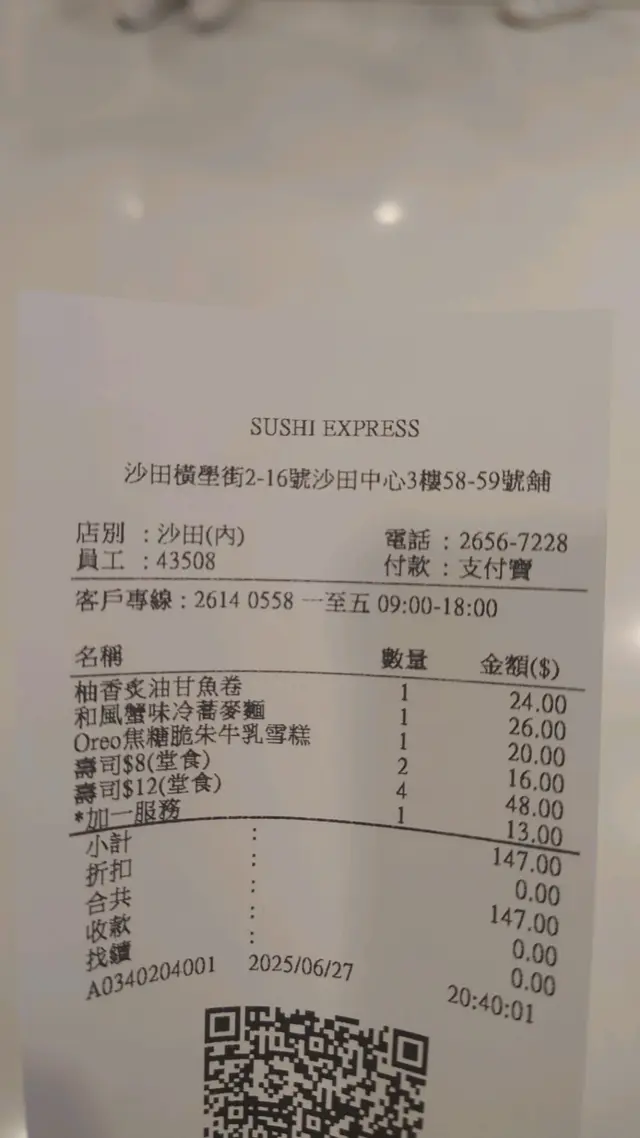 ,但是咬落間中有啲沙沙石石的。叉燒拉麵就覺得比較辣了一點,如果可以選擇不辣的會比較好。 另外炸蝦壽司也比較 好食之選因味道可口而且吃是脆脆的