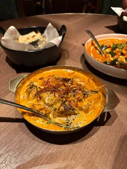 尖沙咀北京道Gaylord Indian Restaurant,米芝莲级正宗印度菜,环境华丽古典,平日夜晚都爆场!枱有双人、四人、长枱同半圆卡位,仲有现场电子琴表演🎹,生日仲会唱歌!一入座就送「印度咖喱脆片」欢迎小食,暖心又开胃😋。上菜碟系暖嘅,细心到爆,员工超友善,服务周到🥰。南印度烤带子伴茄子菠萝果酱($148)🦪,带子大粒软嫩鲜味爆,底下果酱creamy似薯蓉,高质前菜正!松露奶油咖喱鸡柳($228)🍛,必点!咖喱奶油香浓甜辣,鸡柳滑到飞起,松露酱再加分,惹味到停唔到口😍。炭烧三文鱼Tandoori Salmon Tikka($108)🐟,外表以为干,咬落多汁入味,香料够晒,惊喜!扁豆汤Mulligatawny($78)🥣,暖胃香浓;Paani Poori($118)🎉,脆球爆汁,薯泥豆泥酸梅汁,好得意小食!松露芝士烤饼Cheese Truffle Naan($68)🫓,松软满满黑松露芝士,蘸咖喱食系天堂💖!马巴拉龙虾海鲜咖喱($268)🦞,龙虾配上几只大虾,虾肉结实新鲜,咖喱浓;Chicken Tikka炭烧鸡柳($88)🍢,外焦内嫩冇骨,香料咸香啖啖肉。Mango Lassi($78)🥭,传统印度芒果奶昔,芒果味好浓郁,又唔会太甜;Strawberry Lassi($78)🍓,酸酸地几开胃;Espresso Tonic($68)☕,咖啡香浓岩哂咖啡友。Gaylord印度风味正宗,气氛一流,尖沙咀食印度菜首选,推介!🇮🇳✨…Read More