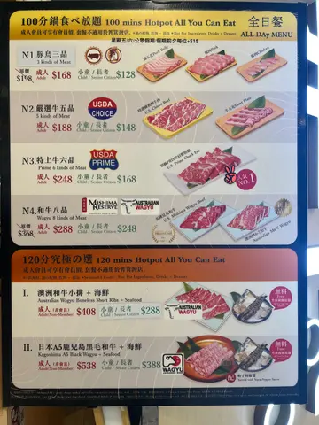 屯门牛一,由开业至今,长期门口都排晒长龙🤪就算屯门市中心附近几个商场有好多任食火锅,佢都似乎系最多人排队既一间~.无他~价钱嚟讲 算系最抵食~就算系最平既餐~啲肉都唔会话差~.而蔬菜既选择都算多~仲有和牛炒饭同日本米饭 、咖哩汁~另外甜品 唔少得既软雪糕~同唔同类型既topping~~..晚市限时100分钟至120分钟睇吓系叫边一个餐既差异~~星期六、日,公众假期加$20。.如果系会员~每位-$10!
