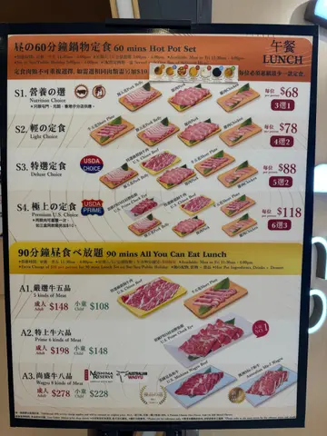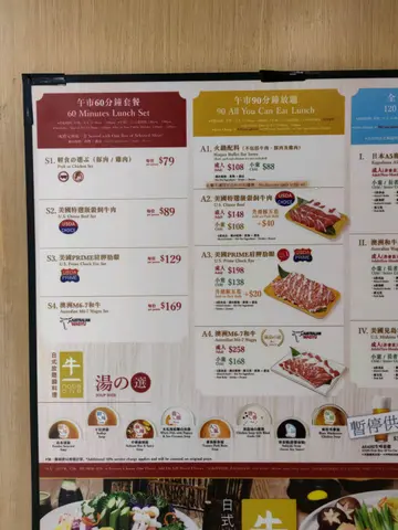日式放题火锅牛一,提供多款优质肉类选择,如美国牛肉、澳洲同日本和牛等,更供应几十款锅物配料,啤酒汽水及软雪糕/乳酪等任饮任食。