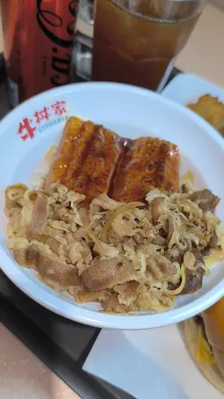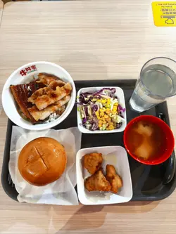 旺角住嘅打工仔收工,想食个快饭,黎牛丼家系唔错嘅选择。餐厅位置方便,喺旺角地铁站行两步就到。🤗餐厅主打牛丼饭,最近仲推出咗汉堡。 加多十几蚊就可以转套餐,有小食、汤及饮品,真系好抵食!1)🍔芝士双重魔王堡 - 见到幅广告图已经觉得好吸引,即刻点嚟试试。上枱时,个包热辣辣, 汉堡煎得好香,厚度十足,重要打孖上。咬落好juicy,好松化。👍🏻2)🍛鳗鱼拼鸡扒饭 - 鳗鱼同鸡扒份量好多,鳗鱼烧得好焦香,鸡扒滑嫩,白饭粒粒分明3) 炸鸡 (三件)- 套餐配,大小适中, 几嫩口4)沙律 - 套餐配 , 包括紫椰菜、椰菜、粟米,淋上胡麻酱,口感清爽🐂牛丼家通菜街123号盛世酒店1楼及2楼…查看更多