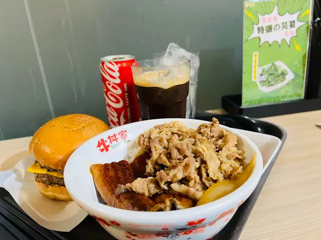 旺角飯堂牛丼家,便當🍱漢堡牛肉飯樣樣齊,平民價岩曬做飯堂,又岩曬食牛的朋友😋同朋友簡單食,點左兩個餐芝士🧀雙重魔王堡 $58 雙重牛肉真係好吸引,食到呢個牛肉扒好有口感,絕對手打牛肉扒,而且十分juicy, 加上芝士片,麵包皮又夠脆,鍾意食漢堡既,十分推薦😋➕凍咖啡☕️ $12鰻魚拼牛肉飯 $62 雙拼飯一定呢個最豐富,大大塊鰻魚同多多份量牛肉,另外炸雞球套餐 ➕$20有埋飲品,我揀左可樂😜呢度好多都可以自助,有調味料🧂,熱水,餐具🍴供應,十分方便。…查看更多