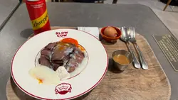 之前食过尖沙咀分店,今次过嚟铜锣湾试吓😙因为呢度都系以food court形式,不过位置都坐得舒服~我同朋友叫咗A4 日本和牛丼 同 慢煮熟食牛肉(大盛)加兰王生鸡蛋黄~😝两款都有惊喜!先讲 A4 日本和牛丼$168和牛一上枱,卖相已经好吸引,有蒜片同埋粒粒和牛粒配上日本珍珠米同招牌兰王蛋😋食落口,牛肉粒外面脆,入口即化,肉味浓郁,带点甜,充满油脂感,配埋咖喱蛋黄酱(+$8)(我哋拣咗呢个酱),超级惹味!虽然酱汁有啲抢味,但系都有另一种风味~加蛋有得加酱汁又得,多种食法🤪慢煮熟食牛丼$88可以自己选择份量,叫咗大盛(90g)(+$28)加埋粒必加既兰王蛋🍳(+$6)牛肉用咗 21 日熟成再慢煮,120g 份量好足,肉片切得薄薄,颜色粉红,望落已经好 juicy。配日本兰王生鸡蛋黄,仲有自家制忌廉,搅拌起来口感湿润又滑溜,超满足!🥰牛肉好嫩,入口有浓浓嘅肉香,蛋黄一爆开仲增添咗份 creaminess,jeng😋而且酱汁都系大大碗,秘制熟成牛辣肉酱(+$12),超级多肉嚟捞饭🤣饮品依旧系我哋喜欢嘅可口可乐🥤(+$12)😆唯一小瑕疵系晚市高峰期可能要等一阵,建议早少少去~而家又多咗啲酱汁,唔同嘅米饭份量选择,可以根据自己喜好,想食高质牛丼嘅朋友,slowcow真系值得一试😎…查看更多