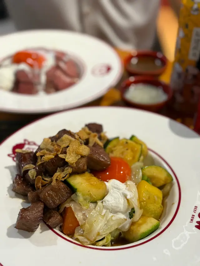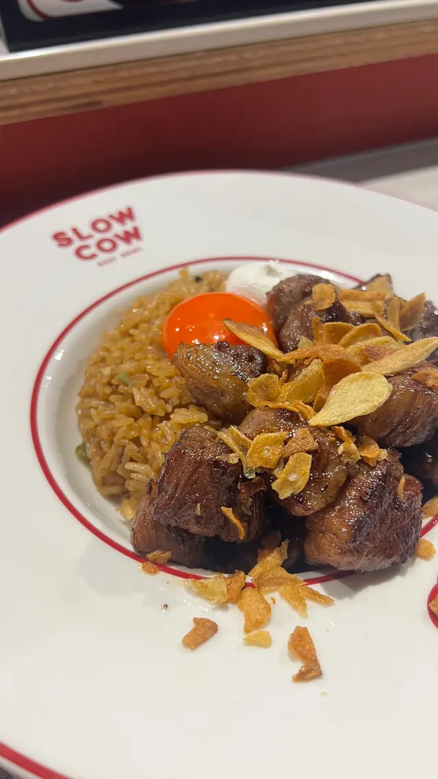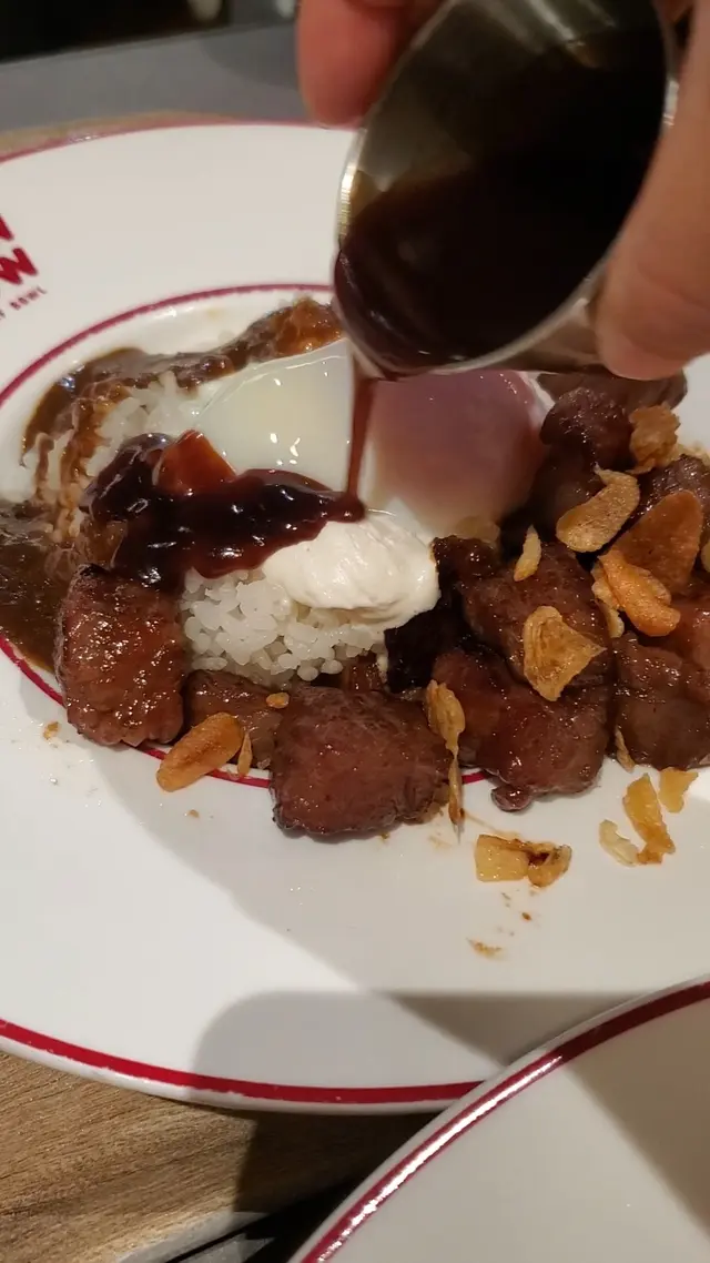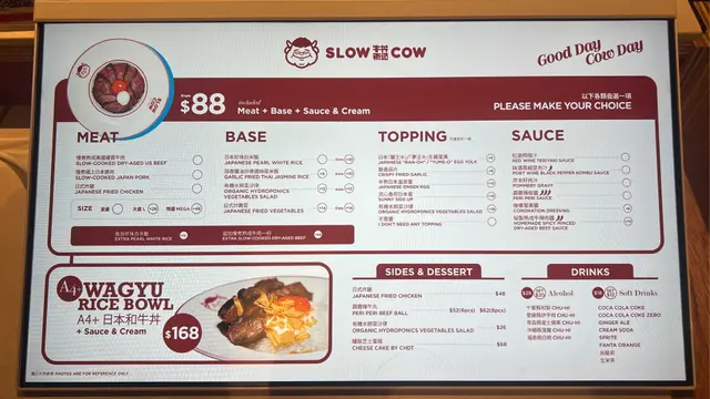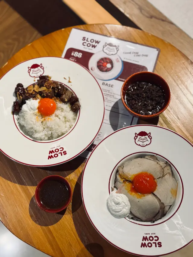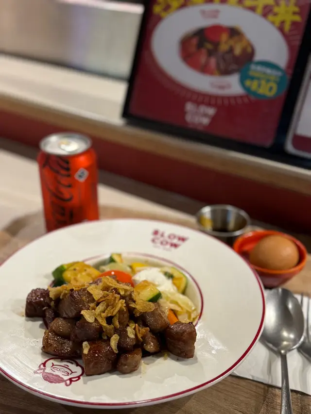 之前食過尖沙咀分店,今次過嚟銅鑼灣試吓😙因為呢度都係以food court形式,不過位置都坐得舒服~我同朋友叫咗A4 日本和牛丼 同 慢煮熟食牛肉(大盛)加蘭王生雞蛋黃~😝兩款都有驚喜!先講 A4 日本和牛丼$168和牛一上枱,賣相已經好吸引,有蒜片同埋粒粒和牛粒配上日本珍珠米同招牌蘭王蛋😋食落口,牛肉粒外面脆,入口即化,肉味濃郁,帶點甜,充滿油脂感,配埋咖喱蛋黃醬(+$8)(我哋揀咗呢個醬),超級惹味!雖然醬汁有啲搶味,但係都有另一種風味~加蛋有得加醬汁又得,多種食法🤪慢煮熟食牛丼$88可以自己選擇份量,叫咗大盛(90g)(+$28)加埋粒必加既蘭王蛋🍳(+$6)牛肉用咗 21 日熟成再慢煮,120g 份量好足,肉片切得薄薄,顏色粉紅,望落已經好 juicy。配日本蘭王生雞蛋黃,仲有自家製忌廉,攪拌起來口感濕潤又滑溜,超滿足!🥰牛肉好嫩,入口有濃濃嘅肉香,蛋黃一爆開仲增添咗份 creaminess,jeng😋而且醬汁都係大大碗,秘製熟成牛辣肉醬(+$12),超級多肉嚟撈飯🤣飲品依舊係我哋喜歡嘅可口可樂🥤(+$12)😆唯一小瑕疵係晚市高峰期可能要等一陣,建議早少少去~而家又多咗啲醬汁,唔同嘅米飯份量選擇,可以根據自己喜好,想食高質牛丼嘅朋友,slowcow真係值得一試😎…查看更多