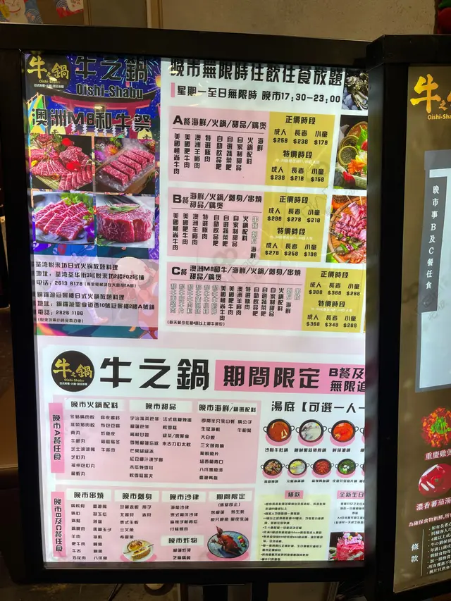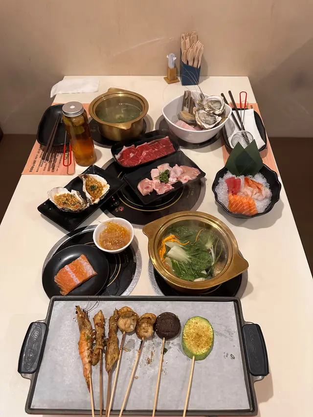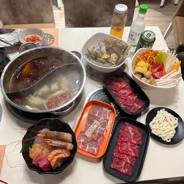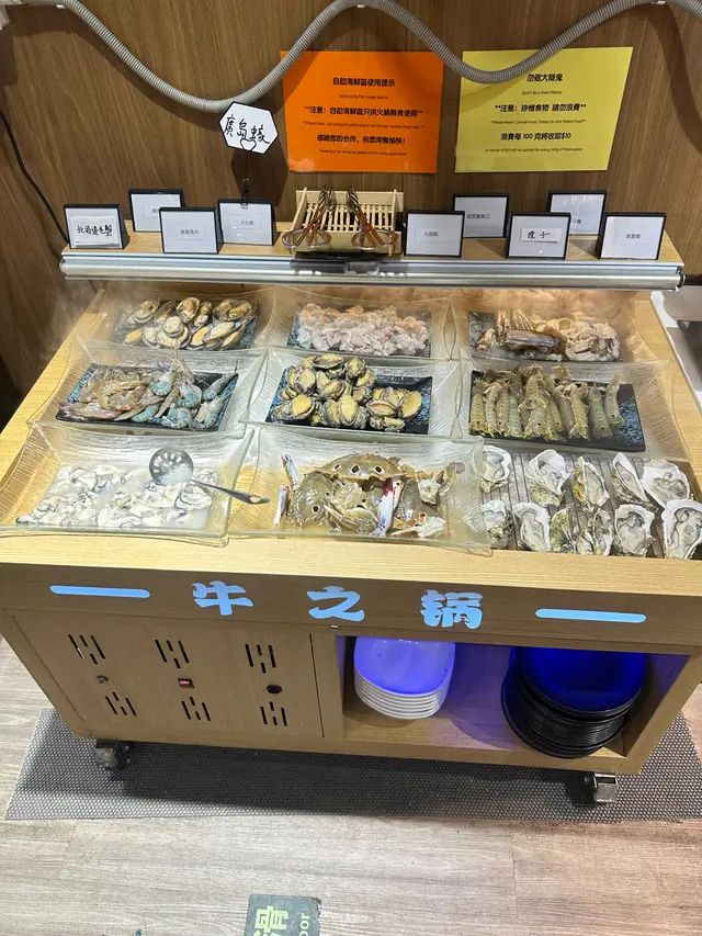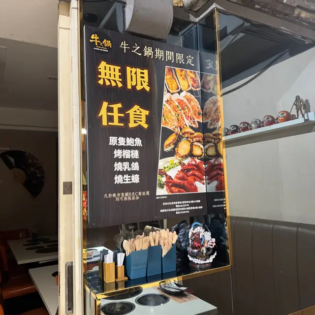 最近同朋友去咗「牛之鍋」試下佢哋的晚市放題,揀咗$298嘅B餐,包晒「海鮮火鍋、刺身、串燒、甜品、雞煲任食」,真心抵食!我哋揀咗一人一鍋,夠晒衛生。我點咗壽喜燒鍋,朋友就點咗椰子雞鍋。壽喜燒湯底甜而不膩,涮肥牛一流,啲肉吸盡湯汁,唔使點醬都好好味。朋友個椰子雞鍋就清甜滋潤,佢話用嚟涮海鮮最能帶出鮮味。講到海鮮,絕對係今餐嘅重點!餐廳外面有個區域放滿「即撈海鮮」,啲蝦同貝類真係好生猛,郁嚟郁去。撈起即涮,蝦肉爽彈鮮甜,完全係街市買返屋企煮嘅級數,喺放題來講真係超除咗火鍋,熟食都絕不馬虎。我忍唔住食咗幾轉蒜香燒生蠔,蠔身飽滿,蒜蓉香口;脆皮乳鴿即叫即上,皮脆肉嫩,唔會乾爭爭。至於即燒串燒,燒牛舌同燒雞軟骨係我至愛,香口惹味,送啤酒一流(外面雪櫃任拎)。刺身方面,三文魚同赤蝦都切得厚身,擺盤整潔,以放題來講唔錯。食到尾聲,當然要試埋佢哋嘅甜品。甜品嘅種類超多,榴槤芭菲同宇治抹茶芭菲真心有驚喜,味道濃郁,唔係得個甜字。最正就係有心太軟、法式焦糖燉蛋、綿綿冰、雪糕窩夫,我哋每樣都叫咗嚟試吓!簡直完美作結😍總括來講,「牛之鍋」無論係食物種類、質素,定係成個用餐體驗,性價比都極高。由生猛海鮮到高質甜品,每樣都有水準,唔會話有啲項目係「揸流攤」。如果你同班朋友一樣咁為食,想樣樣試匀啲,呢度絕對係個唔錯嘅選擇!…查看更多