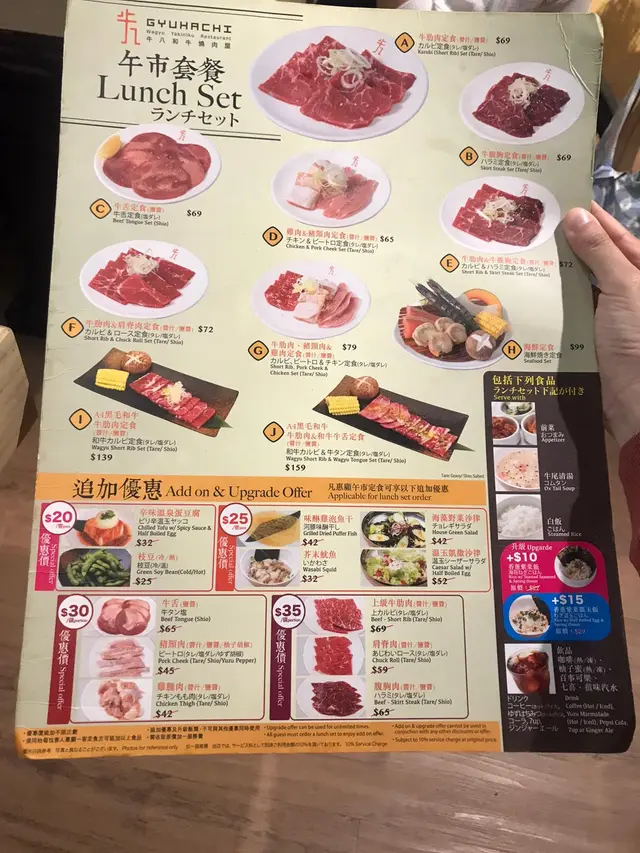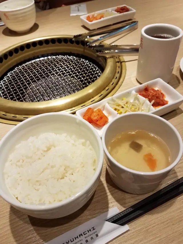 午市有套餐及放題,晏晝食唔到咁多嘢,揀套餐再加料就啱啱好。套餐有不同定食(燒肉、丼、石鍋飯、石鍋烏冬),我就揀咗燒肉定食。牛肋肉&牛胸腹定食($72),追加肩脊肉($35),揀咗鹽醬。套餐包三款前菜、牛尾清湯、白飯、飲品。老實講,三款肉都十分普通,沒太大分別,牛味亦唔重(係牛胸腹牛味重丁丁)。但以呢個價錢嚟講,算係合理啦(絕對止唔到咳,過吓癮都可以嘅)。另外勝在坐得舒服(一條友都可以坐四人枱),空間感十足。收加一服務費。查看更多