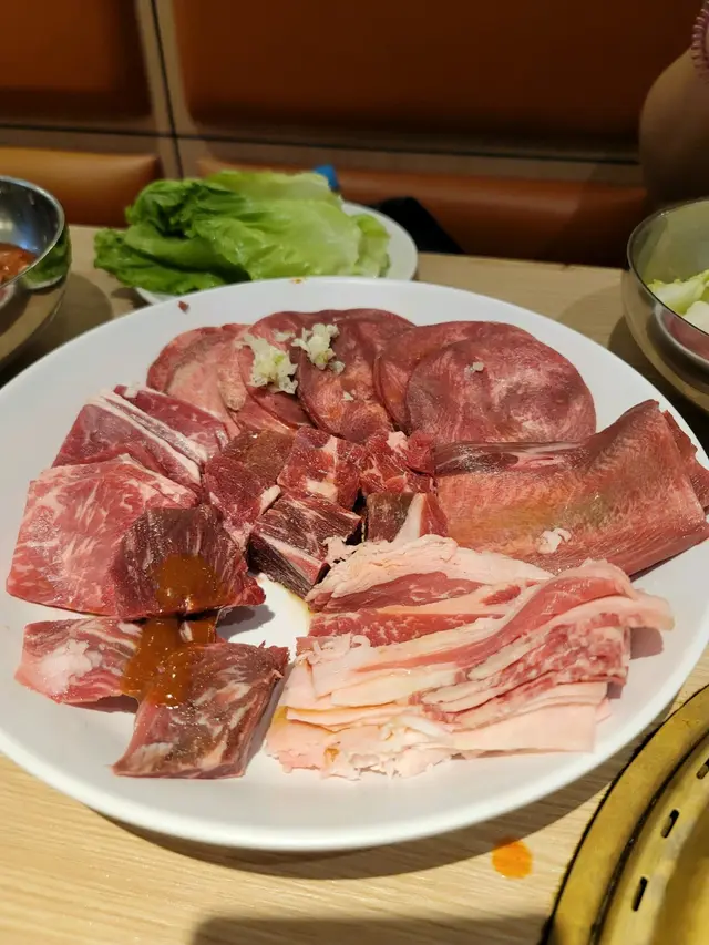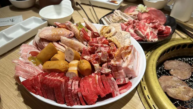 午市放題過一過癮$148加一,120分鐘,豬牛雞任食。身為牛魔王,當然是狂叫牛。掃QR Code手機點餐,未點餐先送上小拼盤(豬牛雞各2件)。牛肋肉最嫩口,肥牛(牛五花)最惹味:夾生菜一齊食,清一清肥膩感。個燒汁都唔錯,唔太咸。呢兩款翻叫左4次大大碟,大滿足。烤冬菇和洋蔥這些,記得同牛肉一齊烤,不斷把肉汁滲到菇和洋蔥內,咁就唔會乾燒燒到乾爭爭。冷麵都幾好味,有泡菜(自己唔鍾意,所以一開始就夾走晒佢地)。查看更多