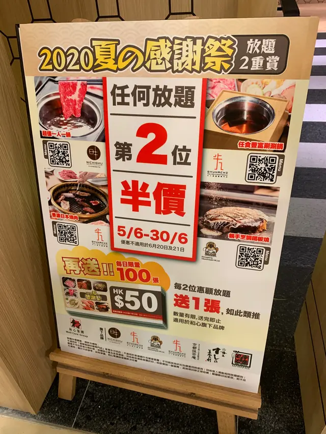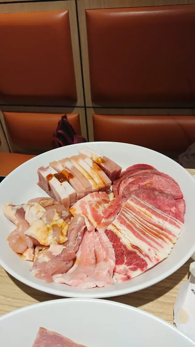 和心集團旗下既餐廳做緊個第二位半價既優惠,優惠不分時段星期一至日都有得折,食完仲送一張💲5️⃣0️⃣現金劵下次用,超級抵 ‼️​​我地兩個人揀左最平個個「牛八放題」,有得任食🐂牛、🐖豬、🐓雞3️⃣款肉,有三款汽水🥤任飲同一球雪糕🍨做甜品。由於係星期五去食價錢係$278一位,折左加埋一總共係$473。​​我地兩個人比左張四人枱,佢既座位全部都好寬闊,叫好多野張枱都仲有好多空位擺野。一坐底先睇佢有咩調味醬汁🧂,有正常既燒汁,一個類似豆瓣醬質地既汁但我地都食唔出佢係咩野醬😂,仲有幾塊新鮮切好既檸檬🍋比你枝成汁咁點肉,我最中意點呢個新鮮檸檬汁,可以中和d肉既飽漏感。​​D肉整體既質素都唔錯✅,牛類其實上到枱唔係幾分到邊款打邊款,但全部入口都唔會鞋,✨有驚喜。反而平時最中意食既口舌就肉質比較un,中意有咬口既朋友應該會中意,但我地就略嫌佢過un啦。​​呢間分店係用落單紙📝落單,竟然冇轉做用ipad📱落單,本身以為係用ipad落單既我有d失望,但好彩佢都冇咩漏單既情況,係食到最尾再落最後一轉既時候有漏一兩樣野,大致上都跟足落單紙既數量,冇話黎唔齊。佢入單既速度都算快,落完單唔係等好耐就黎齊晒,冇嚴重拖單漏單既情況值得一讚。而最後既甜品我地都揀左抹茶味🍵雪糕,佢唔算係好濃抹茶味,但都係合格既,食埋甜品整體上係好滿意既一餐呀!😋​查看更多