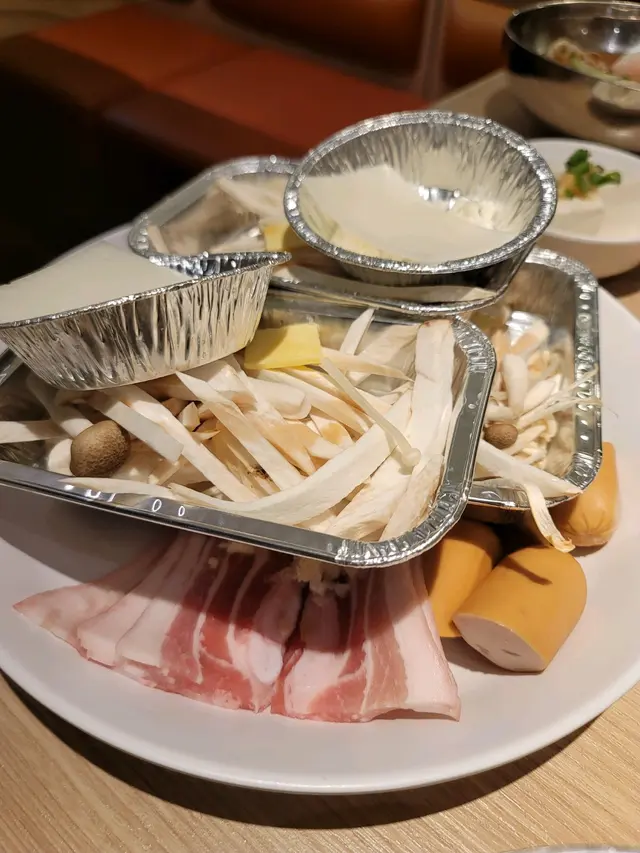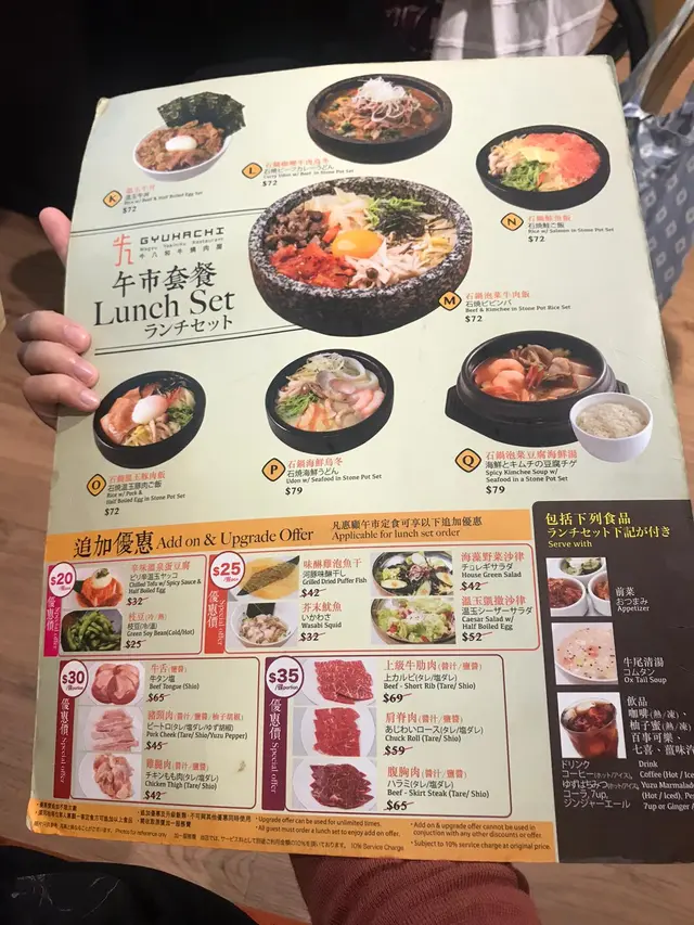同一班朋友一齊來左第一城食呢間店的午餐,已經唔係第一次食,亦係為左燒肉而來。其實可以剩叫燒肉套餐,但覺得要午市套餐加$35有燒肉去燒係最抵食的,建議大家都咁做。每個餐都會包泡菜小食,呢個其實幾好食,作為餐前小食係幾開胃的。然後每人都會有湯,個湯好細碗,份量大約係個碗1/4左右,不過唔緊要。個湯味道有啲得意,完全形容唔到係咩味。好飲咩?講唔上,唔好飲詳,又唔算,最奇怪的是我地成班朋友無一個人能夠講得出佢係啲咩湯。個餐包一杯飲品,我叫左薑味汽水,但係飲唔到有薑味,亦唔係好見到有汽,係一杯唔難飲的甜味的飲品。呢個係海鮮湯烏冬,清清地,個烏冬是扁烏冬,幾好食,海鮮就有蝦、帶子等等,略嫌海鮮味較為淡。辣豆腐海鮮飯: 呢個係辣辣地,因為我鍾意泡菜,所以亦都覺得佢幾好味,個煲辣辣咁來到,豆腐幾滑,幾鍾意食裡面個蛋。石頭窩飯:呢個好好食,飯夠哂乾身,所有食材混左一起也好夾,份量都好大份,一個女仔食,係一定會覺得好飽。我地係特登來食燒肉的,呢個叫「上級牛肋肉」,我地今次只叫左呢種肉,其他肉上次食過,無呢個好食,有肉味,而且薄薄地,好易燒,亦都有咬口得來,肉不會太淋或太鞋口。   建議大家可以食呢過,不過就算唔選呢個,都建議大家唔好選牛舌,上次食過,呢個有啲un,麻麻地。好開心可以同好多朋友食呢餐飯,大家一齊燒下肉,傾下計,relax一下。查看更多