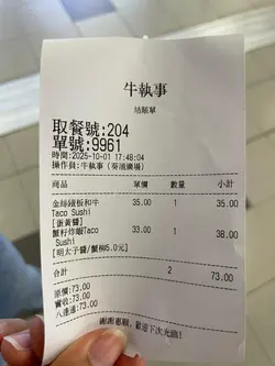 今次喺葵涌广场试咗呢间外卖小店新出既Sushi Taco,仲可以自由组合18款食材同3款酱汁,配搭出自己专属口味,啱晒钟意DIY嘅食客~总评分:6.5/10_-_-_-_-_-_-_-_-_-_-_-_-_-_-_-_-_-_-_-_-_-_-_-_-_-_-🐟 三文鱼带子他他 $53 ★★★☆☆👉🏻 三文鱼粒+带子粒他他酱组合💬 海鲜新鲜度ok,未算突出🐮 金丝铁板和牛 $35 ★★★★☆👉🏻 和牛碎配炸到金黄酥脆嘅金丝外壳💬 推荐配明太子酱,牛味几香,金丝脆口,系人气之选!🦐 蟹籽炸虾 $33 ★★★☆☆👉🏻 原只炸虾铺满蟹籽同酱汁💬 炸虾爽脆,蟹籽卜卜口,整体不过不失🥙 SUSHI TACO 整体评价 ★★★☆☆👉🏻 紫菜taco壳脆身,配料自由度高💬 即叫即整,等既时间会有少少耐💬食落ok但唔方便食,一咬就好易散,食得好狼狈!味道上冇乜特别深刻,经过可以一试🏠 牛执事 📍 地址:葵芳葵富路7-11号葵涌广场3楼…查看更多